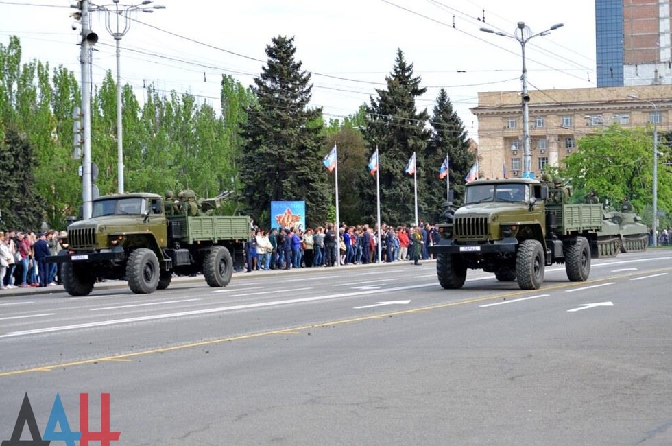 Напомним, что первая репетиция парада Победы прошла в Донецке 3 мая и собрала 45 танков, бронемашин, артиллерийских орудий, установок реактивных систем и ЗРК.