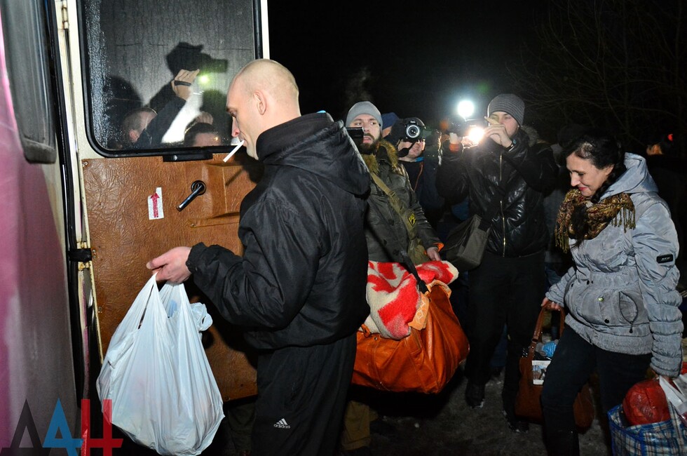 Пятнадцать человек были переданы украинской стороной уполномоченному по правам человека в Донецкой Народной Республике Дарье Морозовой и руководителю рабочей группы Луганской Народной Республики по обмену военнопленных Ольге Кобцевой. При процедуре передачи присутствовали начальник штаба оперативного командования ДНР Руслан Якубов, представители министерства обороны ДНР и военной прокуратуры ЛНР.