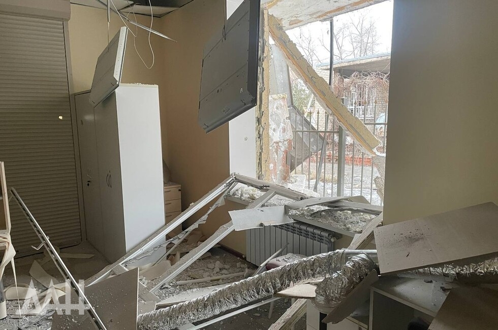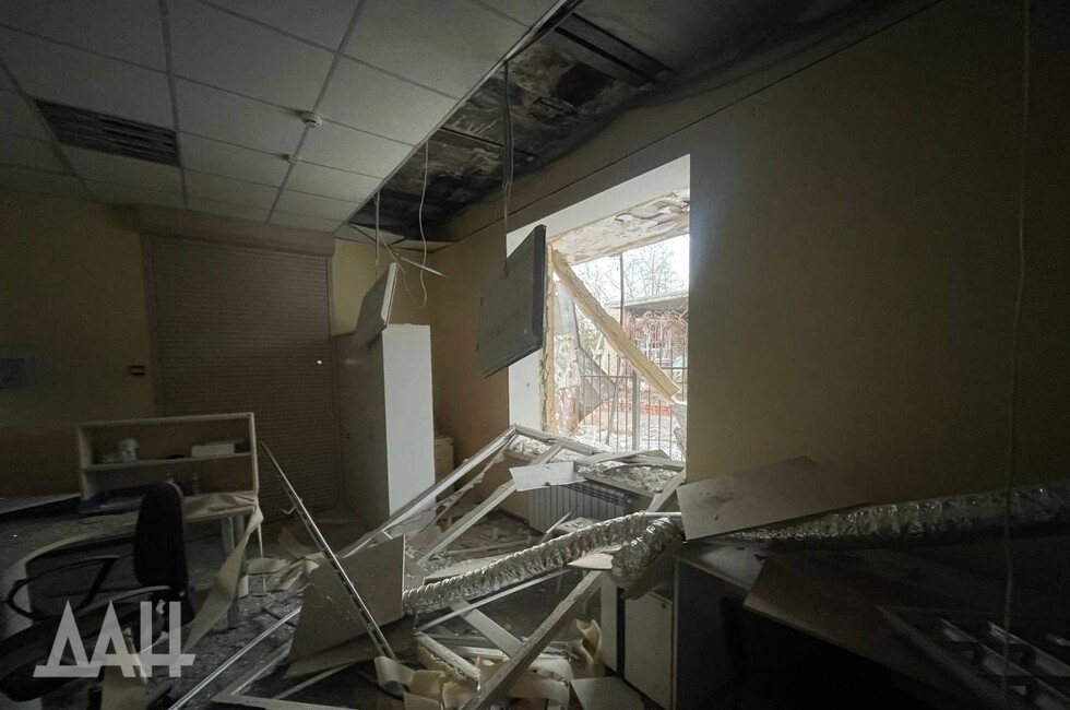 Донецк, 13 янв — ДАН. Здание аптеки повреждено в Киевском районе Донецка прямым попаданием украинского снаряда. Об этом сегодня сообщили в СЦКК.
