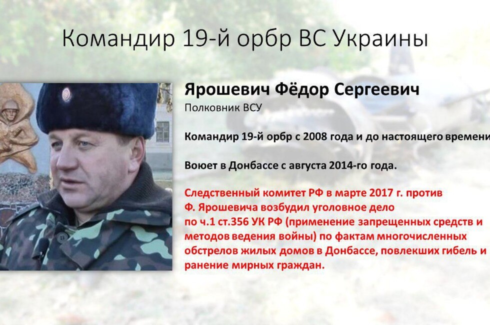 По данным общественников, к обстрелам причастны силовики 19-й отдельной ракетной бригады ВСУ под командованием полковника Федора Ярошевича. Также подозреваются заместитель комбрига подполковник Сергей Фриз и офицер командования бригады старший лейтенант Алексей Наконечный.