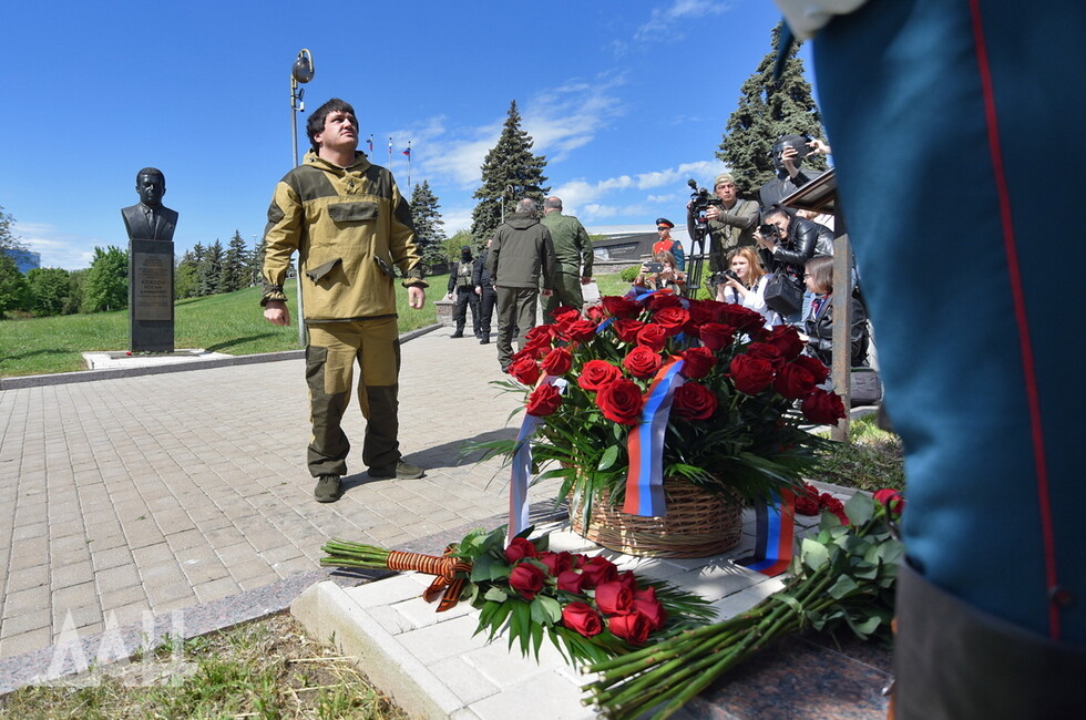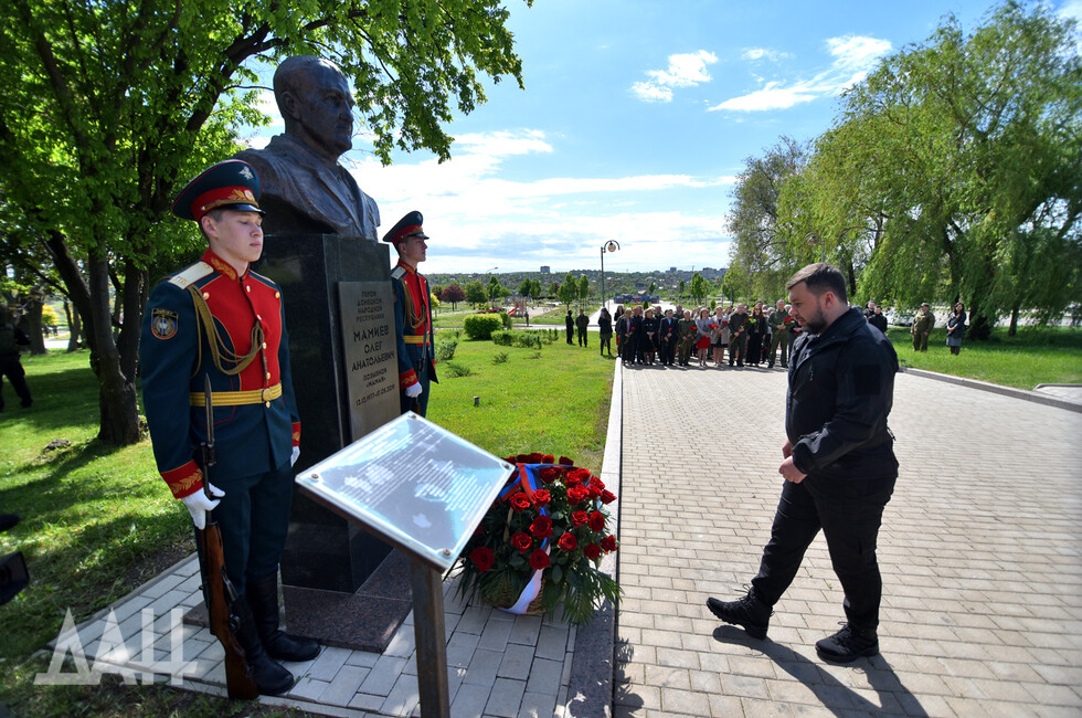 Вместе с Главой ДНР возложить цветы к бюсту Мамиева пришли председатель Народного Совета Владимир Бидёвка, Герой ДНР Ахра Авидзба, мэры городов и районов и другие жители страны.