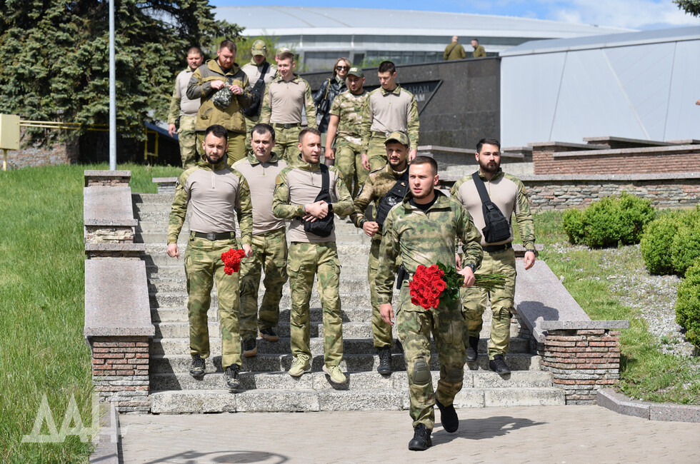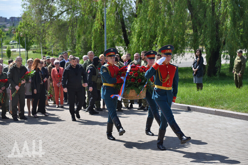 Донецк, 17 мая – корр. ДАН. Глава ДНР Денис Пушилин вместе с жителями страны почтил память погибшего четыре года назад командира интернациональной бригады «Пятнашка», Героя Республики Олега Мамиева (позывной «Мамай»). Мемориальная церемония прошла сегодня на Аллее Героев рядом с монументом «Твоим освободителям, Донбасс» в центре Донецка.