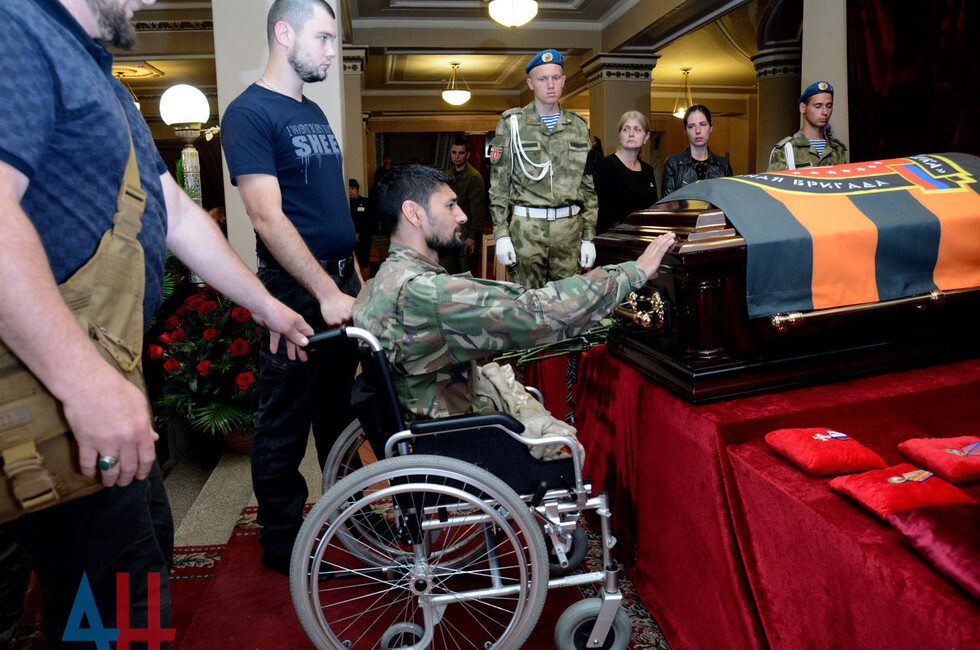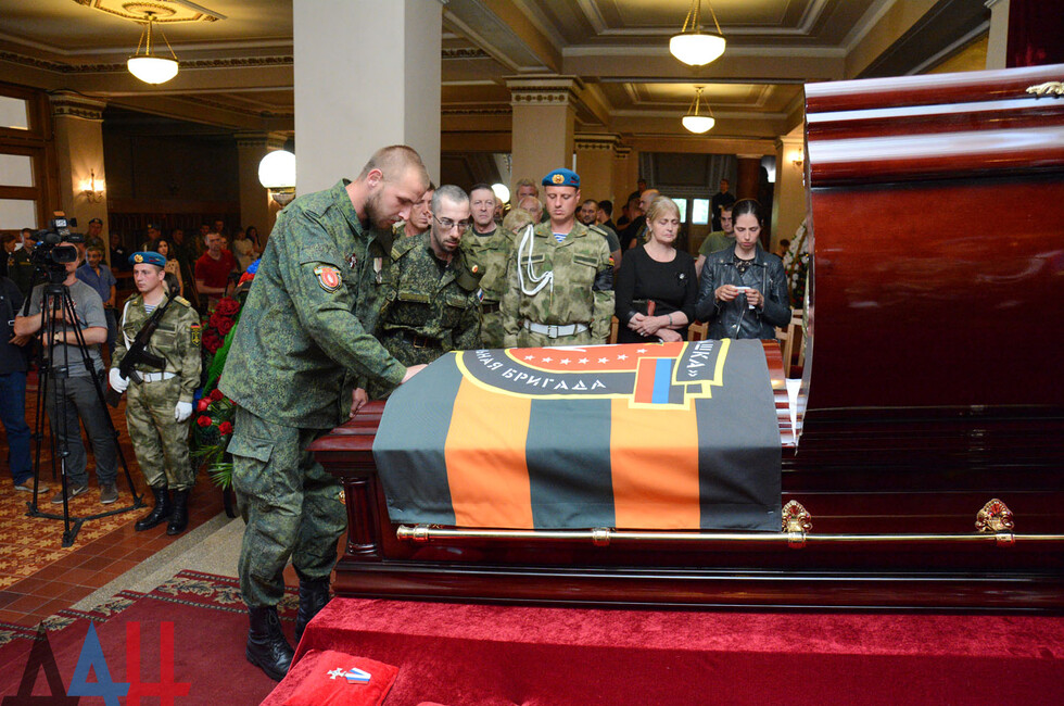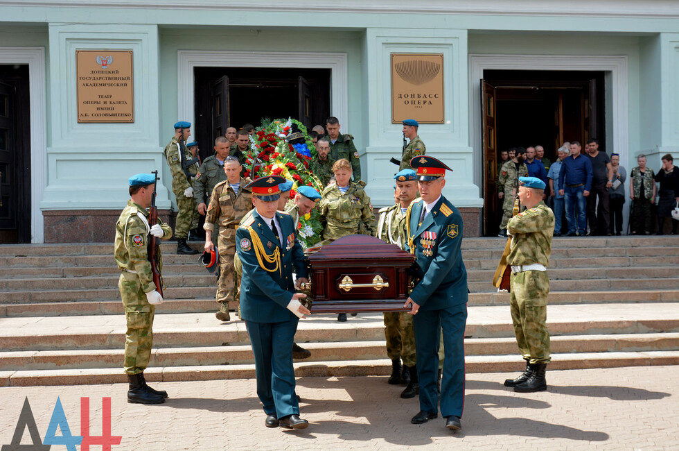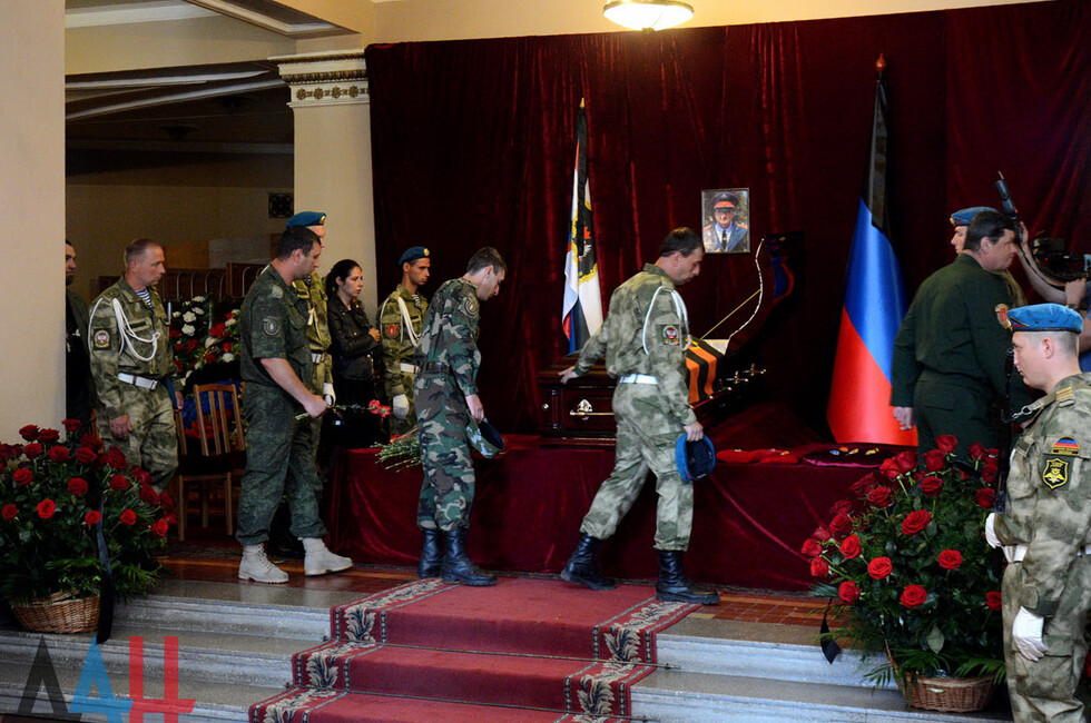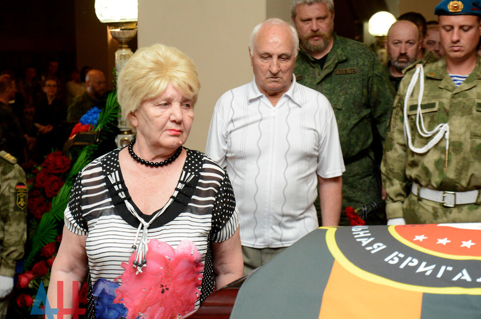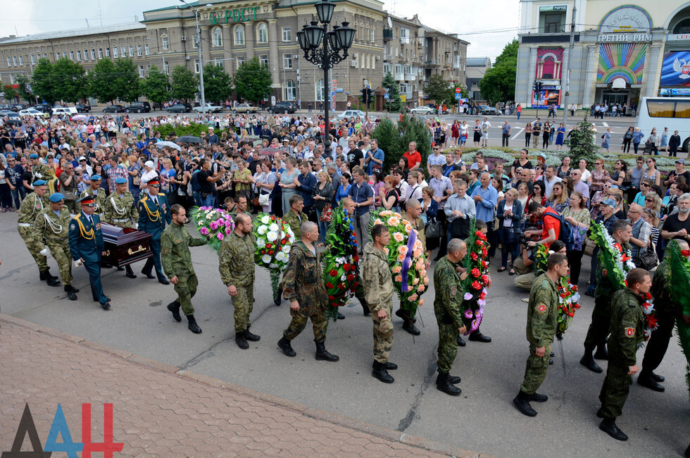 Церемония прощания состоялась в здании Донецкого государственного академического театра оперы и балета им. Соловьяненко. Гроб с телом покойного был установлен в холле учреждения. Проститься с «Мамаем» пришел Глава ДНР Александр Захарченко, сослуживцы погибшего, его родные, близкие, другие жители Республики. Многие несли цветы и траурные венки.