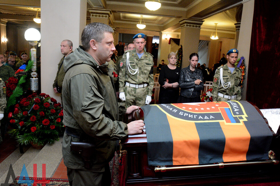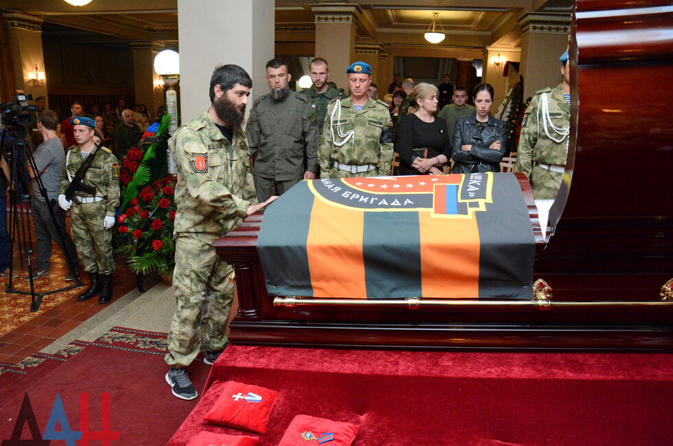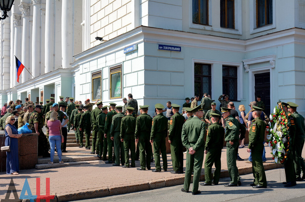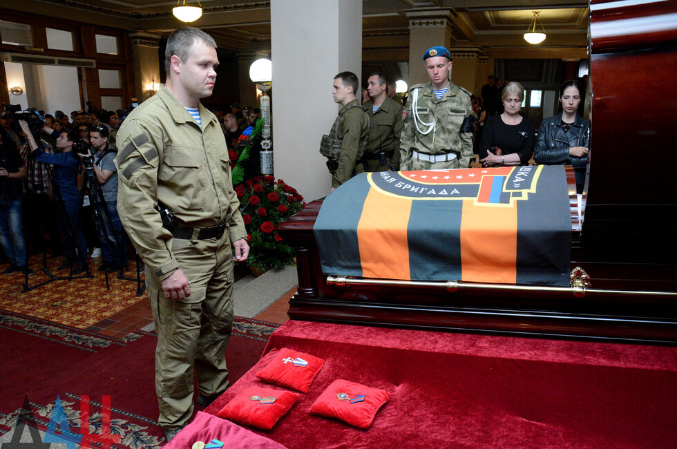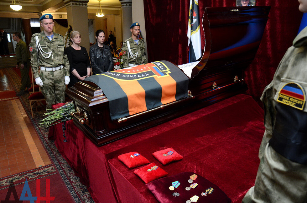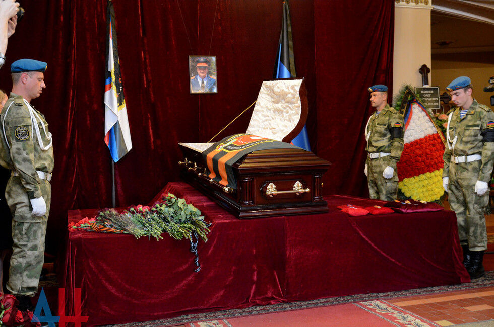 Церемония прощания состоялась в здании Донецкого государственного академического театра оперы и балета им. Соловьяненко. Гроб с телом покойного был установлен в холле учреждения. Проститься с «Мамаем» пришел Глава ДНР Александр Захарченко, сослуживцы погибшего, его родные, близкие, другие жители Республики. Многие несли цветы и траурные венки.