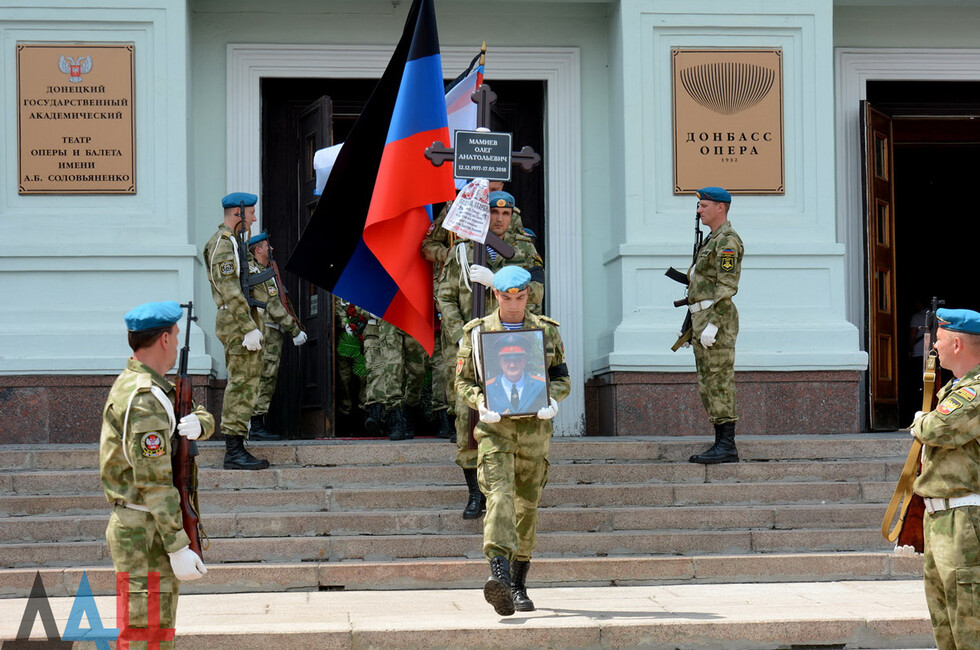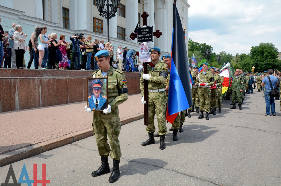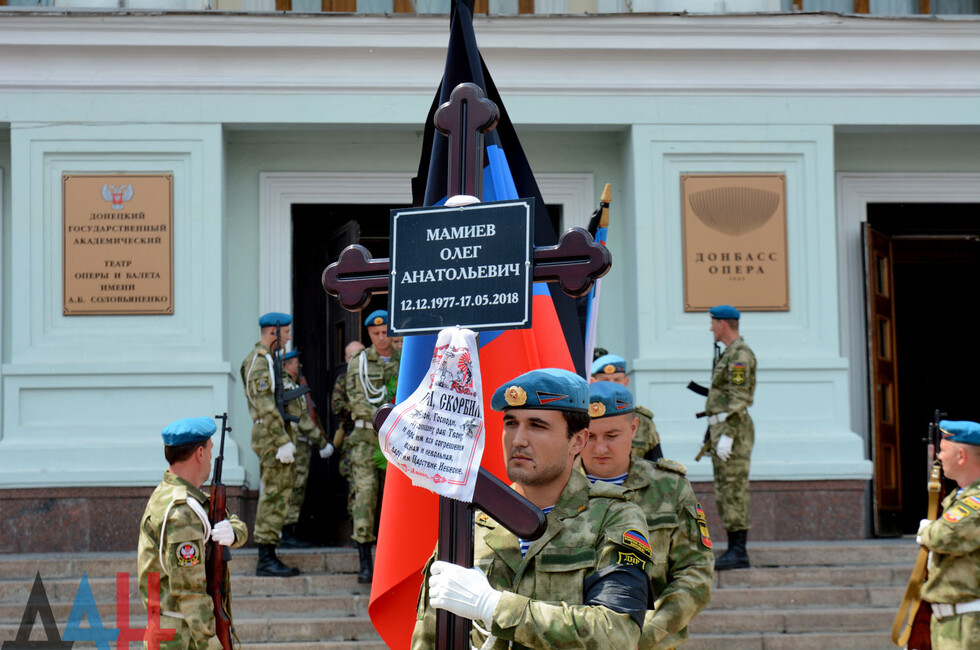 Донецк, 19 мая - корр. ДАН. Жители ДНР сегодня проводили в последний путь командира интернациональной бригады «Пятнашка» Олега Мамиева (позывной «Мамай»), который погиб при обороне Республики 17 мая, получив ранения несовместимые с жизнью.