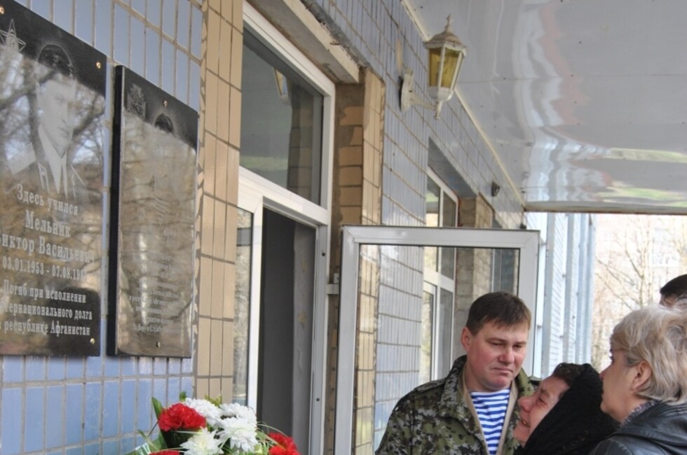 Донецк, 16 апр - ДАН. Мемориальные доски в честь павших воинов-афганцев Виктора Мельника и Александра Ротмирова открыты сегодня на здании донецкой школы номер 71, в которой учились герои. Как сообщает корр. ДАН, мероприятие прошло под грохот продолжающихся обстрелов окраины Донецка.