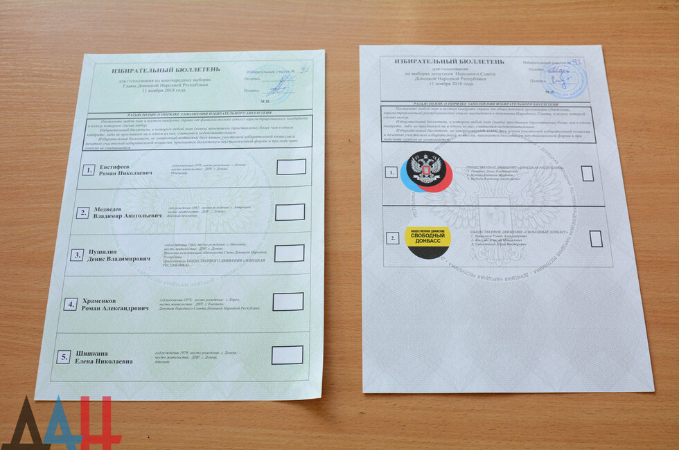 Процедура досрочного голосования продлится в ДНР с 6 по 10 ноября. Основной этап голосования состоится 11 ноября, в этот день будут работать 408 избирательных участков. За пост руководителя государства борются пять кандидатов – Денис Пушилин, Елена Шишкина, Роман Храменков, Владимир Медведев и Роман Евстифеев. За места в Народном Совете соперничают два общественных движения – «Донецкая Республика» и «Свободный Донбасс». *ха*кл*дя*нк