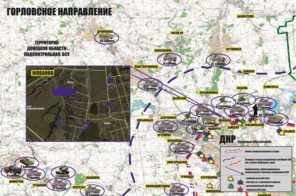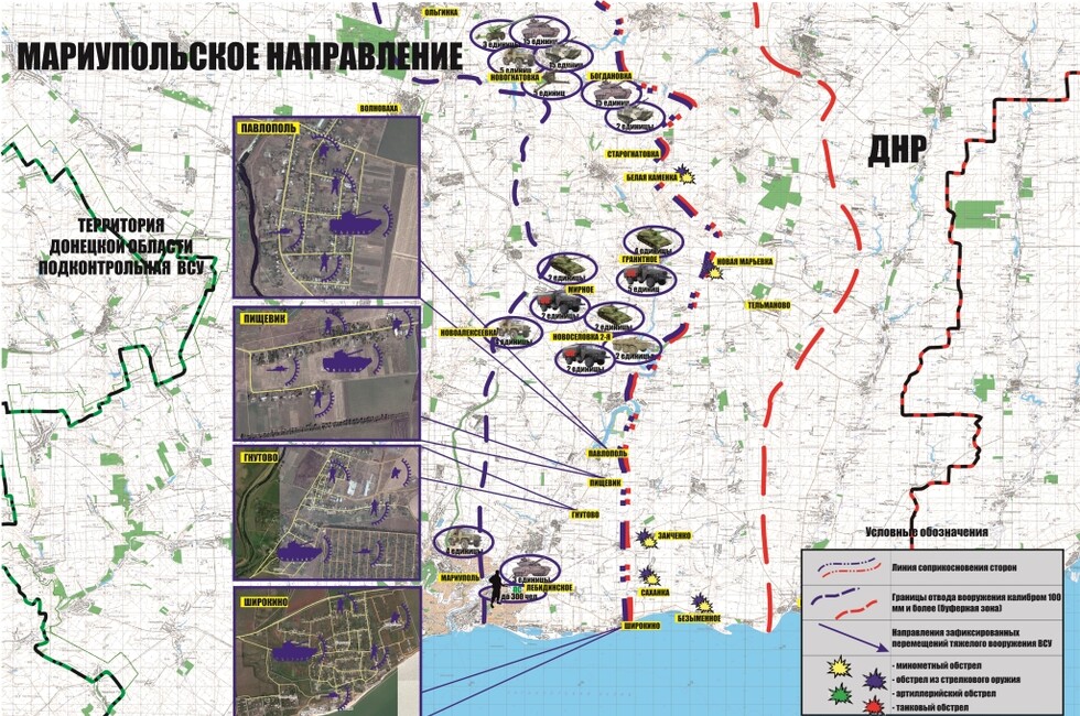 «На сегодняшний день военными формированиями Украины проводятся действия "пассивного наступления" – происходит занятие населенных пунктов и принудительное выселение из домов местных жителей, находящихся в буферной зоне, а именно: Пищевик, Павлополь, Гнутово, Широкино, Жованка», - сказал замкомкорпусом.
