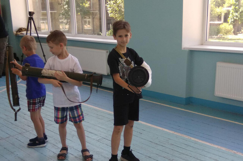 Донецк, 11 июн - корр. ДАН. Юнармейцы военно-патриотического клуба «Беркут» организовали для учащихся младших классов выставку оружия и боеприпасов. Мероприятие прошло в спортзале донецкой школы №48.