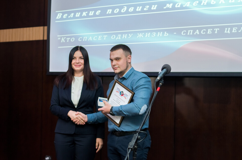 В ходе нее десяти ребятам были вручены благодарности общественного движения и часы с надписью: «Кто спасет одну жизнь – спасет целый мир». Один из получивших сегодня памятную награду – Александр Шестак. Летом 2014 года он закрыл своим телом трехлетнюю племянницу от взрыва снаряда. Парень получил серьезные ранения, однако жизнь девочки удалось спасти.