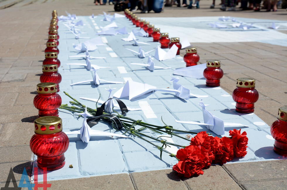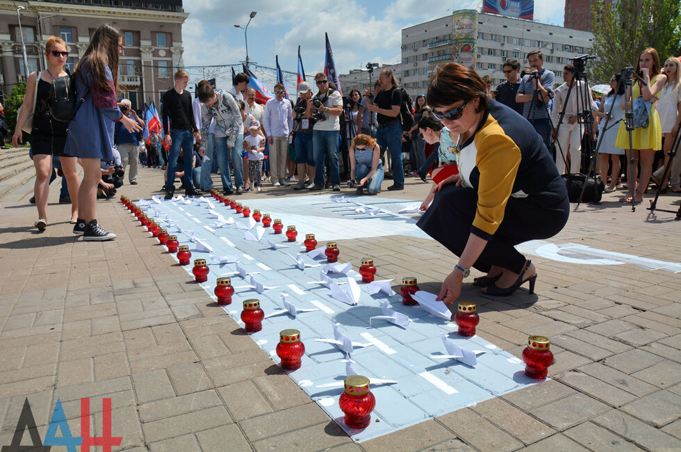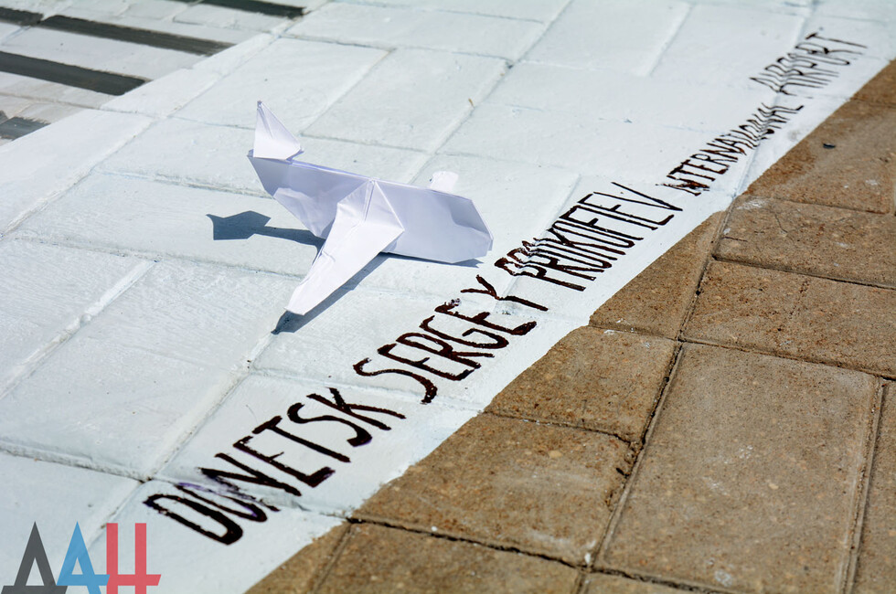 Организаторов акции выступило ОД «Донецкая Республика». По информации движения, сегодня в 20:30 на площади состоится зажжение свечей в память о погибших за время боевых действий в Донбассе. Лампадки уже установлены на импровизированной взлетно-посадочной полосе. Участники мероприятия также возложили к ВПП бумажные самолетики.