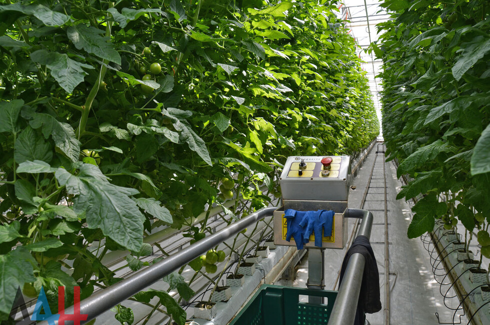 Руководство компании организовало для высоких гостей экскурсию по рассадам и предоставило возможность одними из первых попробовать выращенные помидоры. Теплица площадью пять гектаров полностью закрыта. Здесь выращивают томаты двух сортов – «дирк» и «болдуин». Вес одного овоща превышает 100 граммов.