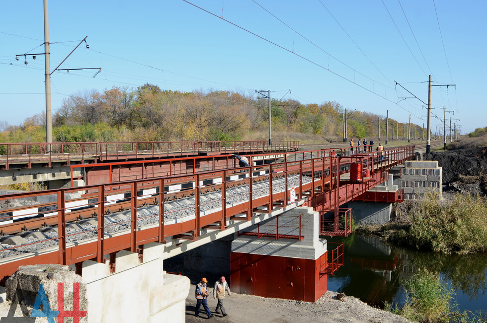 Напомним, что мост построен в 1958 году. Через перегон следует пассажирский поезд Ясиноватая - Луганск, а также все пригородные поезда Горловского и Никитовского направлений, осуществляются грузовые перевозки с Горловского узла и транзит в сторону Дебальцево. В декабре 2014 года в ходе боевых действий сооружение было повреждено – обрушены металлические пролетные строения, железобетонные балки пролетного строения четного и нечетного путей, повреждена опора. Это осложнило ситуацию на перегоне, на котором работало три пути. В конечном итоге остался только один, по нему и осуществлялось все движение. Восстановление данного объекта Республики позволит оптимизировать транспортный поток и наращивать объемы перевозок.*нм*пг*дя
