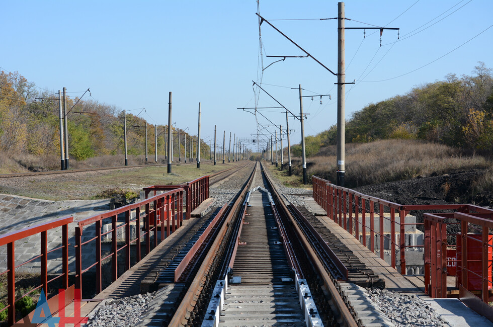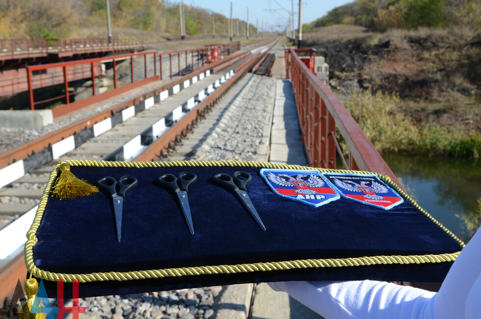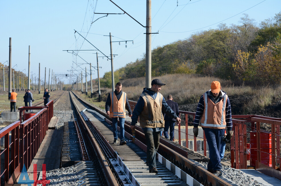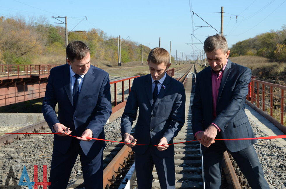 Пантелеймоновка, 15 окт - ДАН. Торжественное открытие восстановленного после боев 2014-го года железнодорожного моста прошло сегодня на перегоне Пантелеймоновка - Горловка. Корреспондент ДАН лично оценил результат прошедших работ.