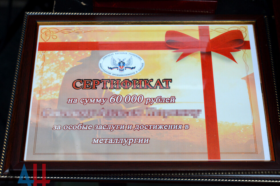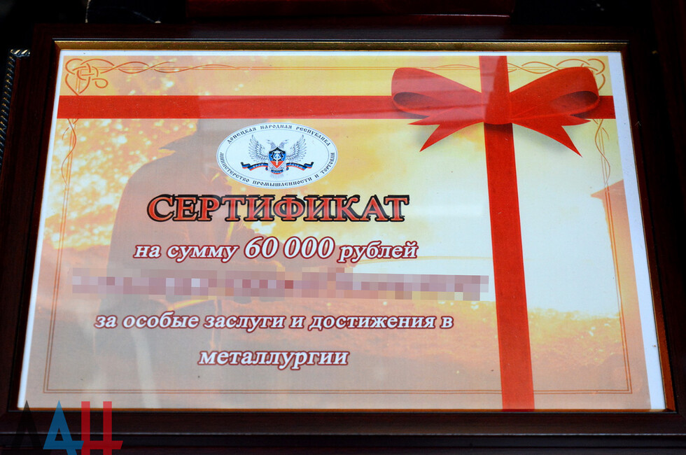 На церемонию в Донецк съехались металлурги из разных районов, в том числе подконтрольных Киеву. За трудовые заслуги были премированы шестеро жителей Волновахского района – Анна Ф., Татьяна Т., Александр К., Геннадий Б., Владимир К., Сергей П. - и четверо из ДНР – Алексей Савенков, Алексей Чикаленков, Николай Шмиголь и Александр Попов. Каждый получил сертификат на сумму 60 тысяч рублей.