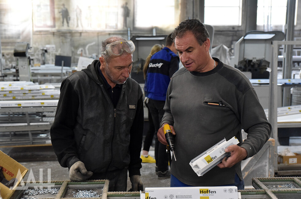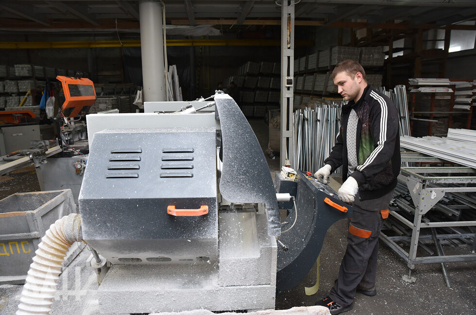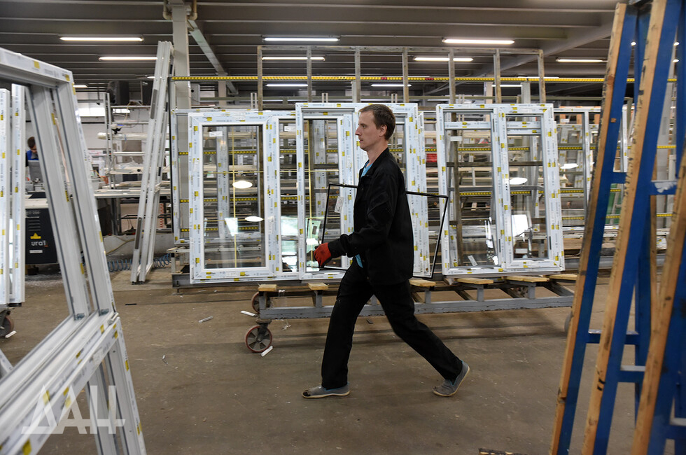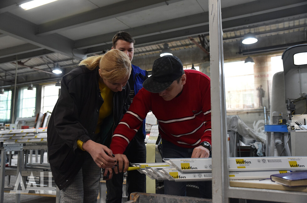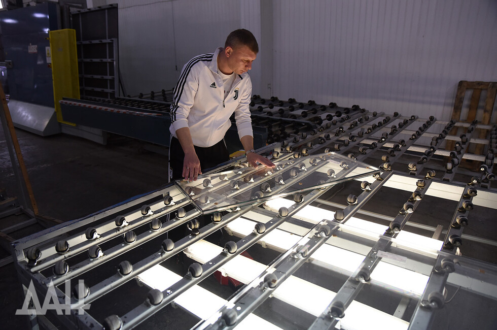 Гостям также показали стекольный цех. Тут с помощью специального оборудования подгоняют размер стекла и собирают рамы, здесь же происходит регулировка створок и установка всех недостающих деталей. Как рассказали на предприятии, стекло и комплектующие для окон закупается в России. Сейчас на предприятии трудятся 50 человек.
