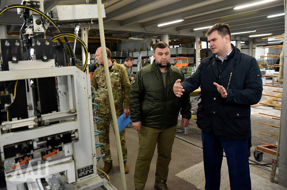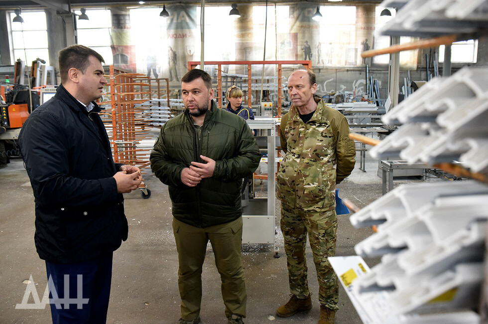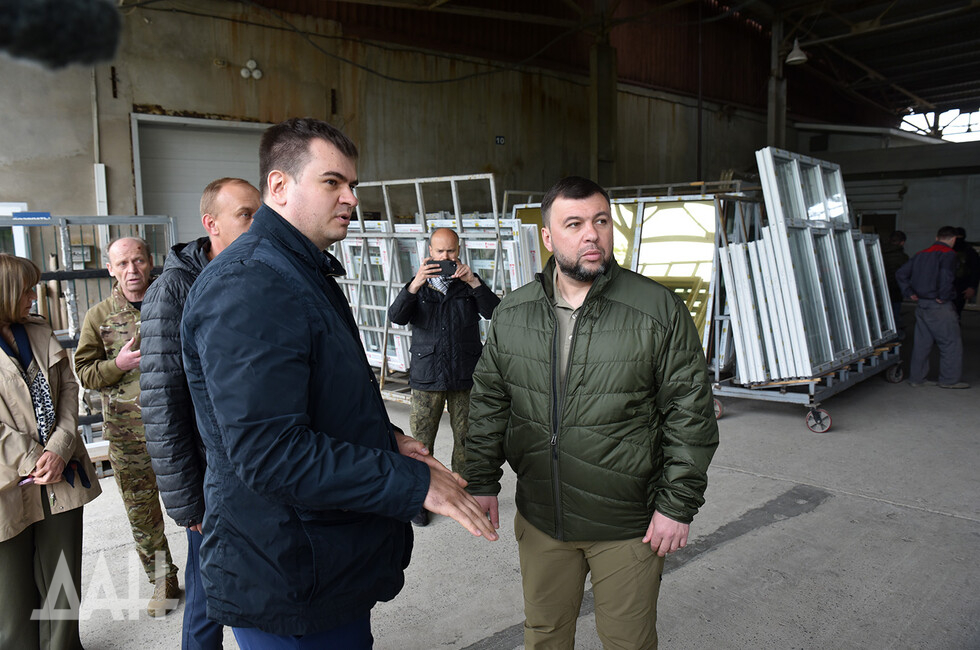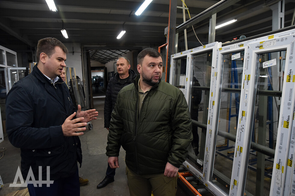 Макеевка, 19 мая – корр. ДАН. Глава ДНР Денис Пушилин посетил сегодня фабрику по производству металлопластиковых окон в Макеевке. Он осмотрел производственные мощности предприятия, а также пообщался с руководством.