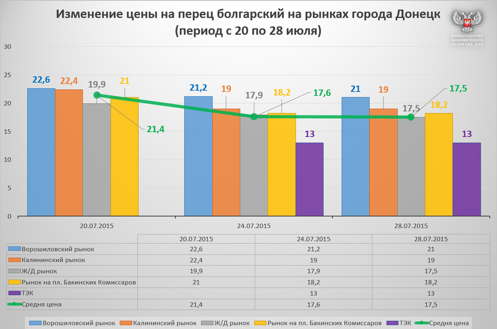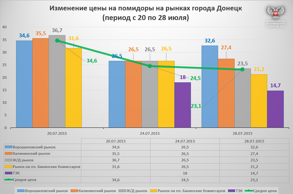 По данным Самохиной, программа повлекла за собой уменьшение цен на овощи и фрукты не только в рамках проводимых в Донецке ярмарок. Снижение стоимости на всю овощную продукцию наблюдается и на рынках столицы.