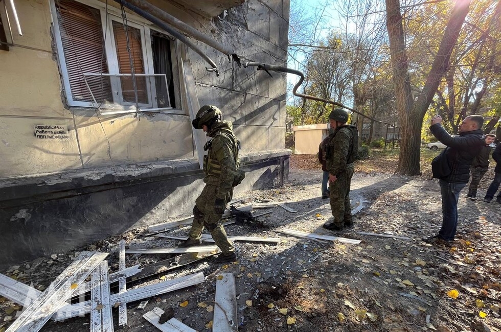 Донецк, 3 ноя — корр. ДАН. Боевики Киева сегодня нанесли массированный удар по центру Донецка, в результате чего были ранены трое мирных жителей. На месте обстрела побывал корреспондент ДАН.