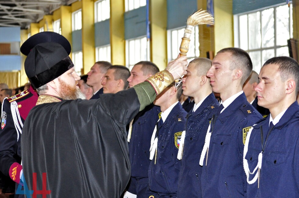 Настоятель донецкого Храма святого мученика Иоанна Воина архимандрит Киприан окропил учащихся академии святой водой, благословив их на дальнейшую учебу и службу. По завершению торжественной части все 272 курсанта прошли строевым маршем перед гостями мероприятия и преподавательским составом.
