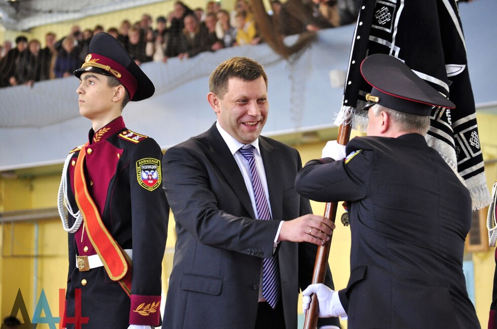 Лидер ДНР вручил ректору академии, полковнику полиции Анатолию Попову знамя учебного заведения, после чего все будущие сотрудники органов внутренних дел произнесли слова присяги, обязавшись охранять закон в Республике и защищать сограждан.