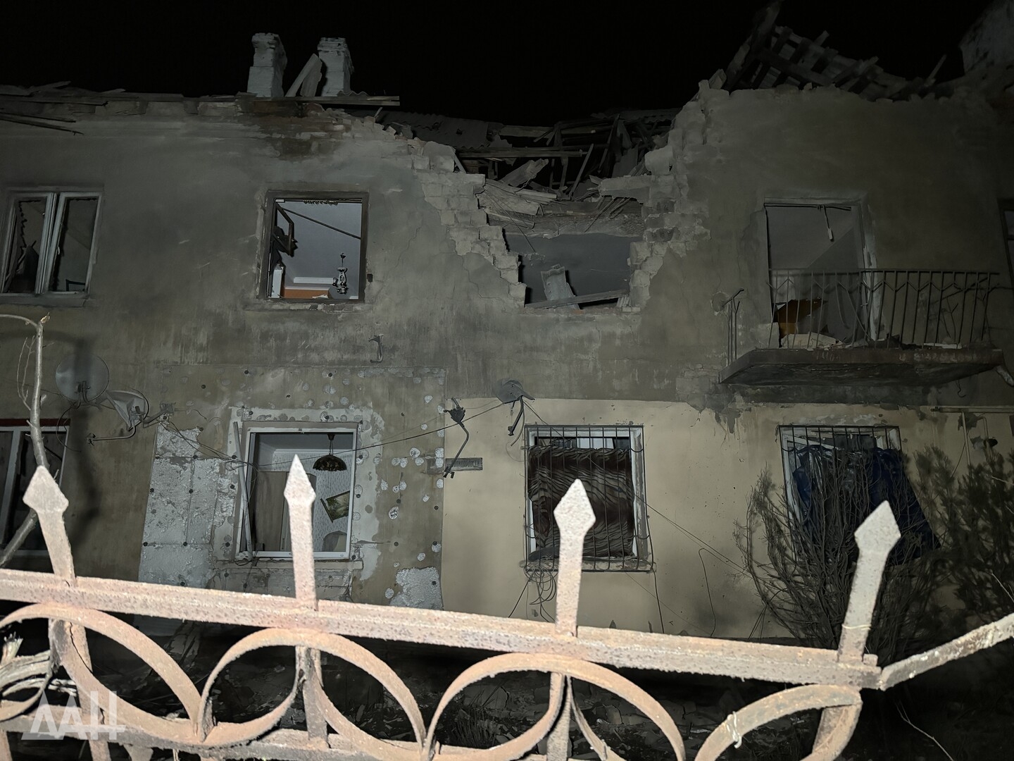Донецк, 30 ноября — ДАН. Многоквартирный дом в столице Республики подвергся атаке украинских БПЛА. Как сообщает корр. Донецкого агентства новостей, два мирных жителя получили ранения.