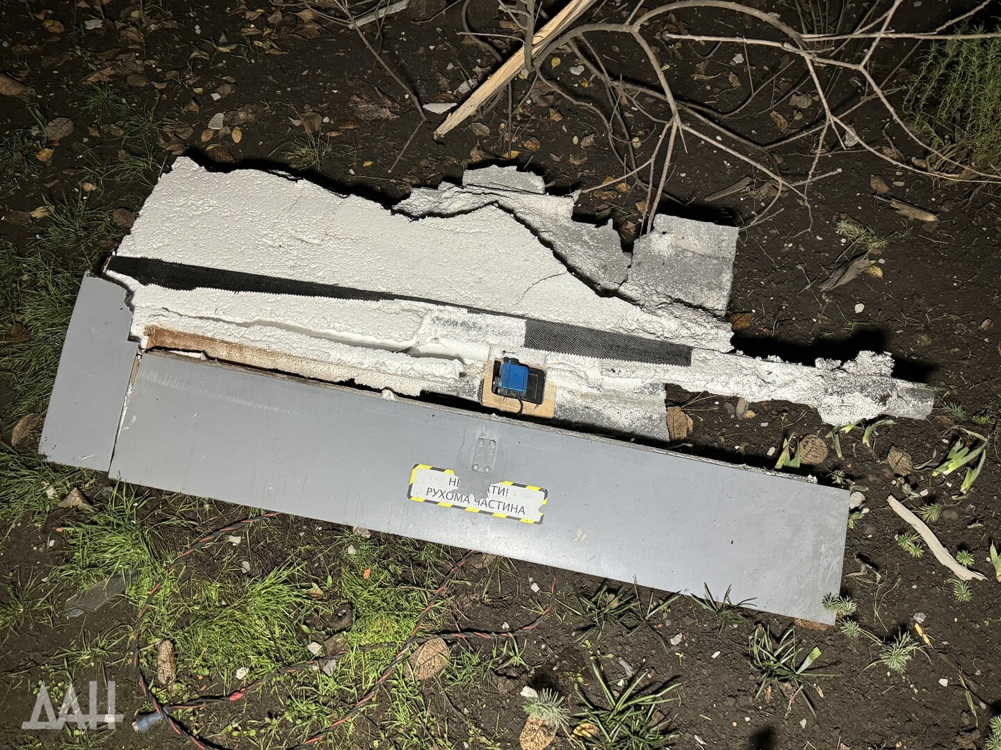 На земле обнаружили обломки БПЛА с характерными надписями на украинском языке.