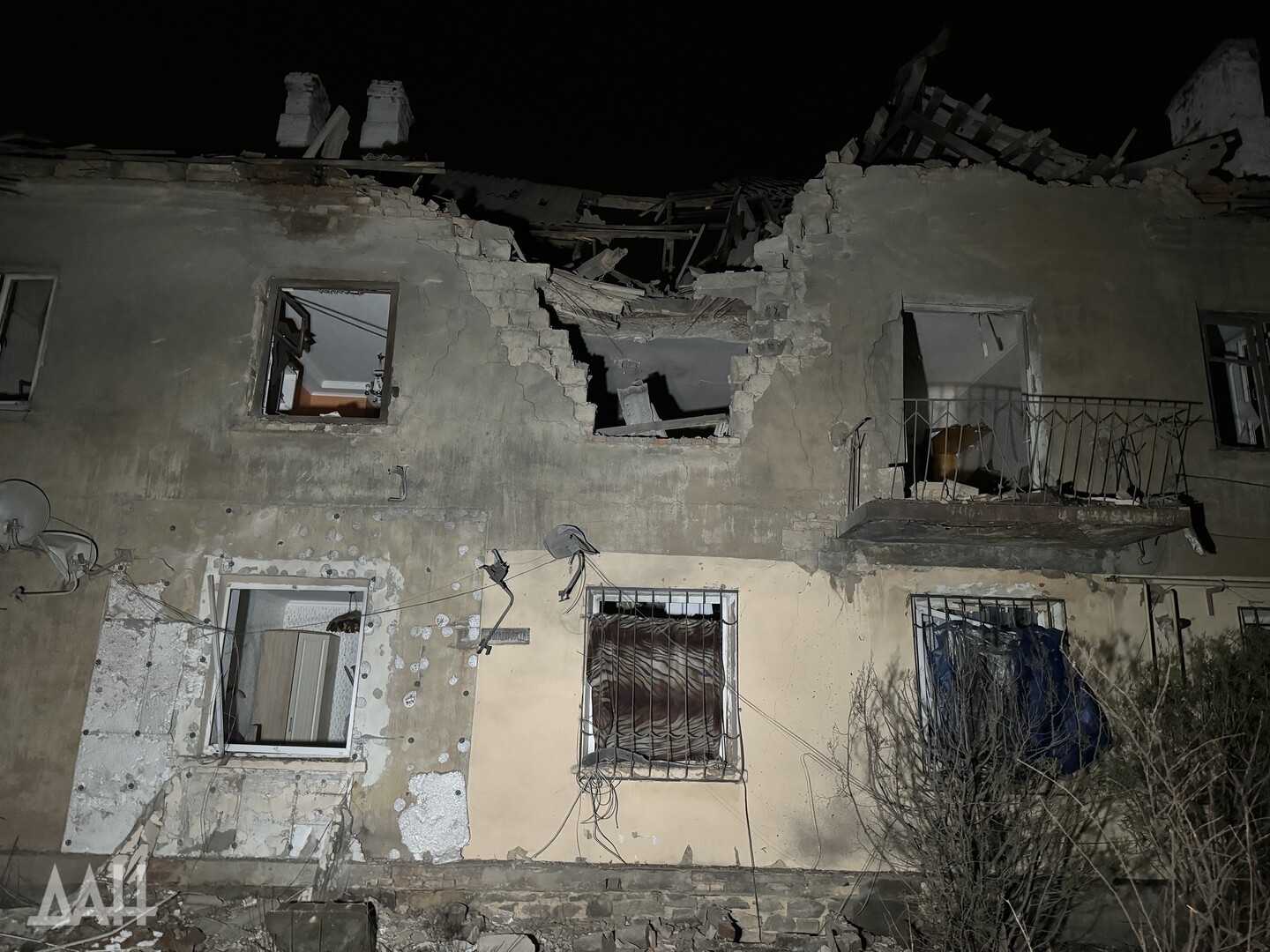 Это произошло в субботу, около 22:00. Дроны ударили по жилой двухэтажке на улице Солидарности. На фото — сильнейшие разрушения — пробоина в стене, обрушенная кровля. В результате атаки ранения получили женщина 1976 г.р. и мужчина 1983 г.р.