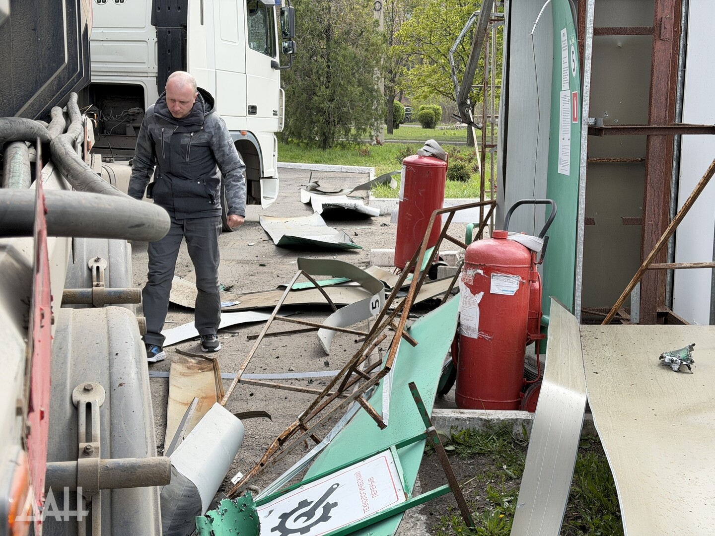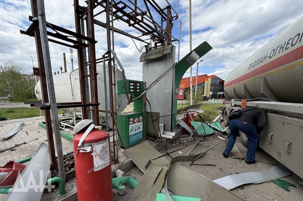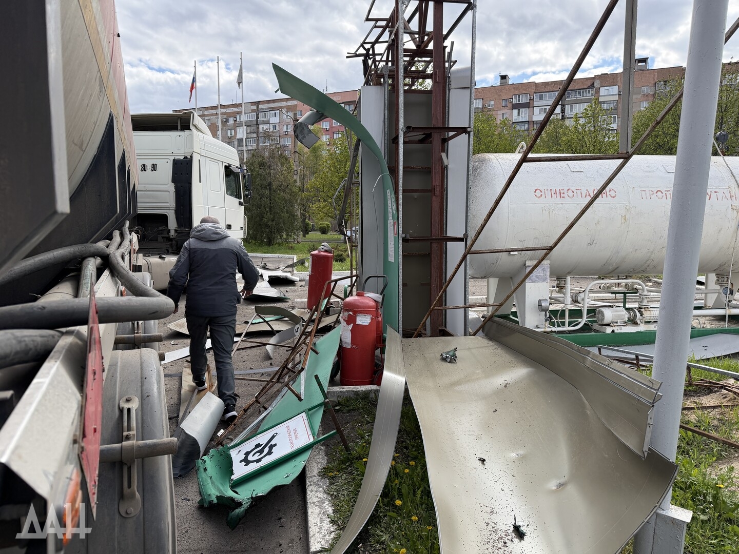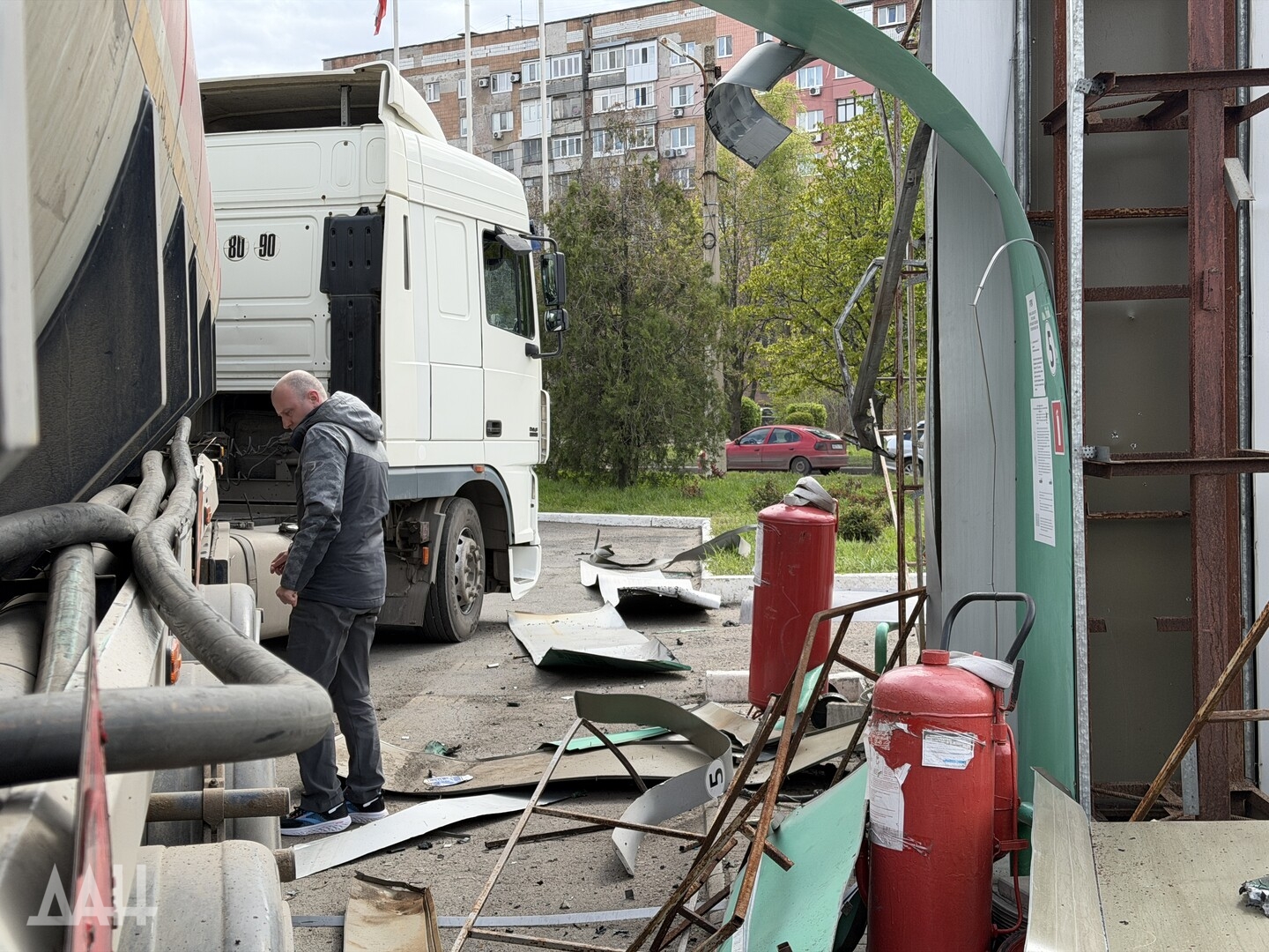 Донецк, 25 апр — ДАН. Украинский БПЛА атаковал заправку в Донецке. На месте происшествия побывал корреспондент Донецкого агентства новостей.