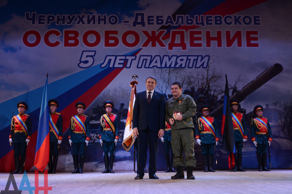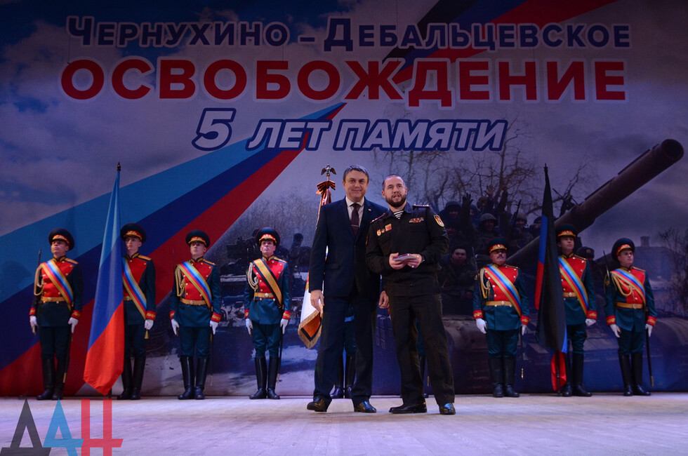 The ceremony took place in the course of the celebrations at the Lugansk Academic Philharmonic Society marking the 5th anniversary of the liberation of Debaltsevo and Chernukhino from Ukrainian troops. The awards were also given to current Sparta unit commander Vladimir Zhoga, former commander of the Pyatnashka unit, DPR Hero Akhra Avidzba and other servicemen.