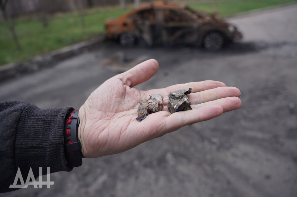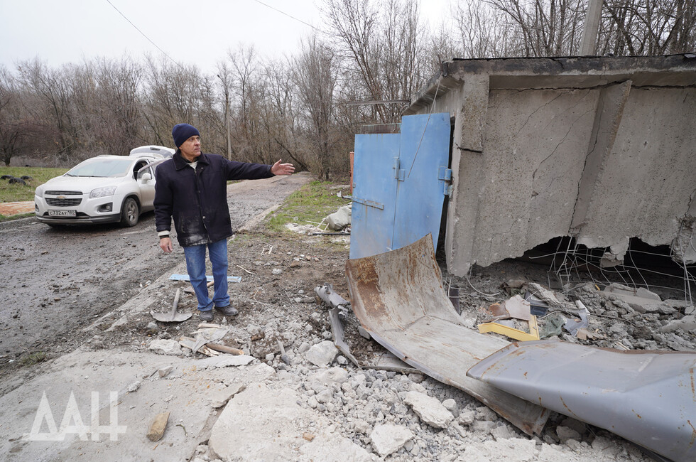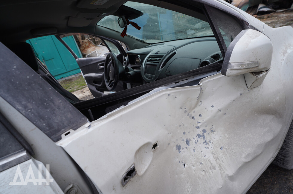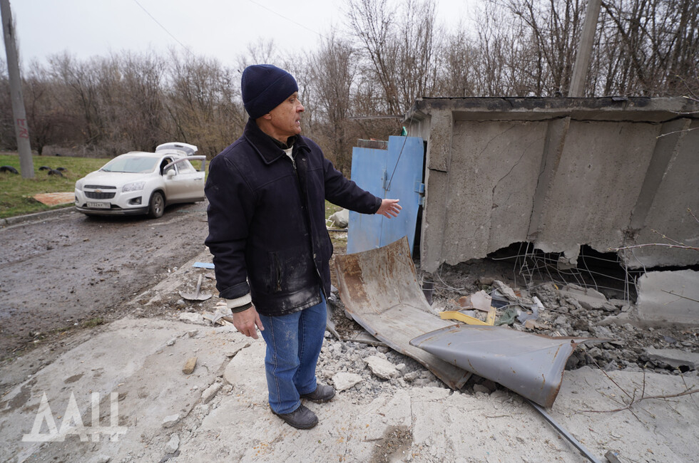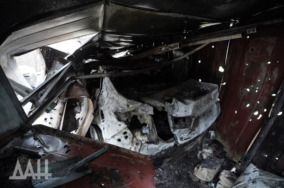 The strike was delivered at Listoprokatchikov and Chapayev Streets. Enemy shells hit a yard next to a children’s playground. Two garages were destroyed, a car burnt down and another vehicle was damaged by shrapnel.