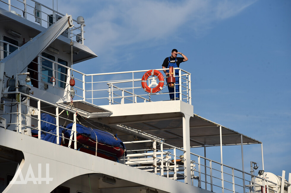 The first ferry, named Lavrentiy, arrived from Yeysk to the port of Mariupol.