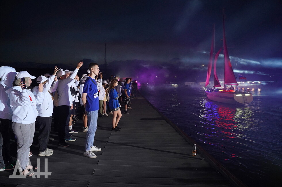 They set afloat a scarlet sail yacht, the symbol of the show hosted by St Petersburg on June 24-25.