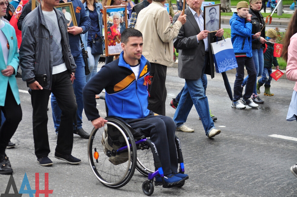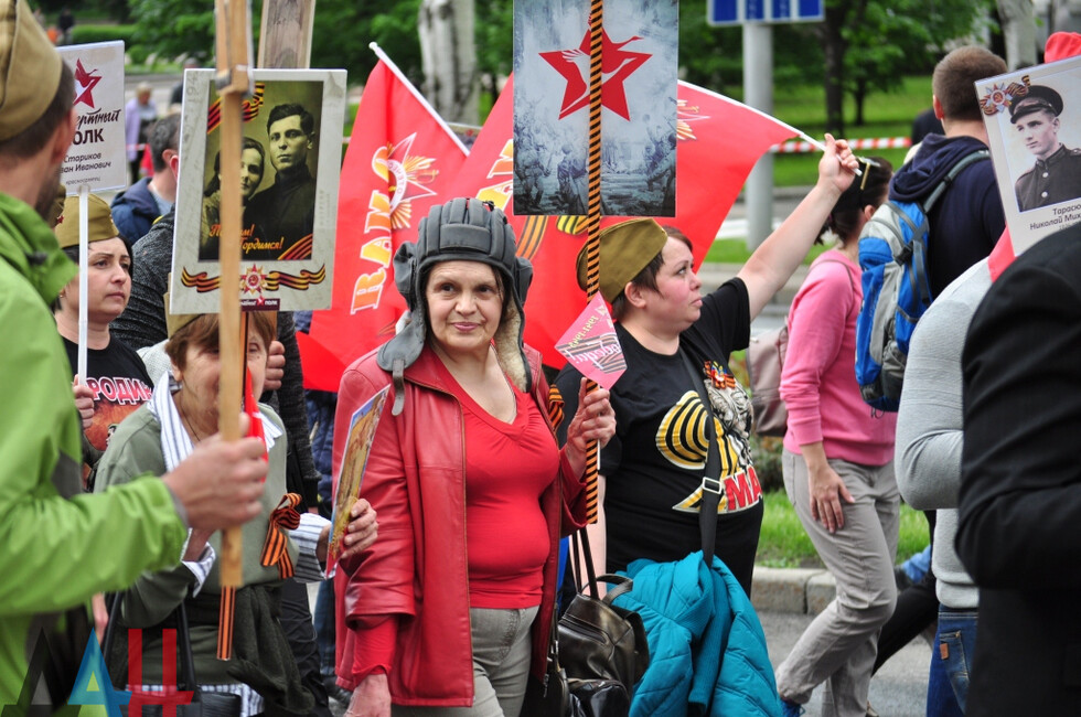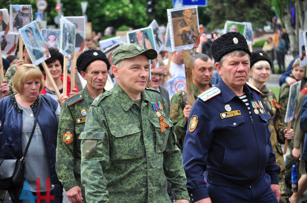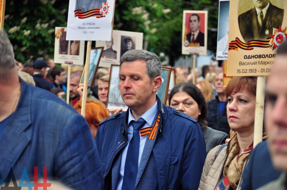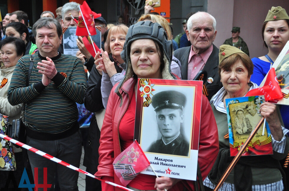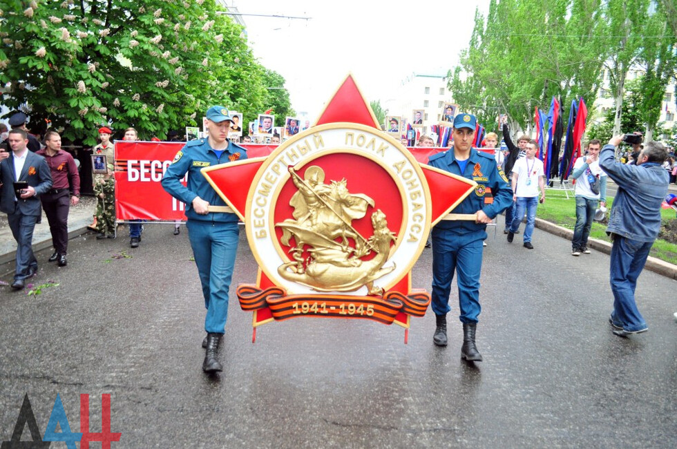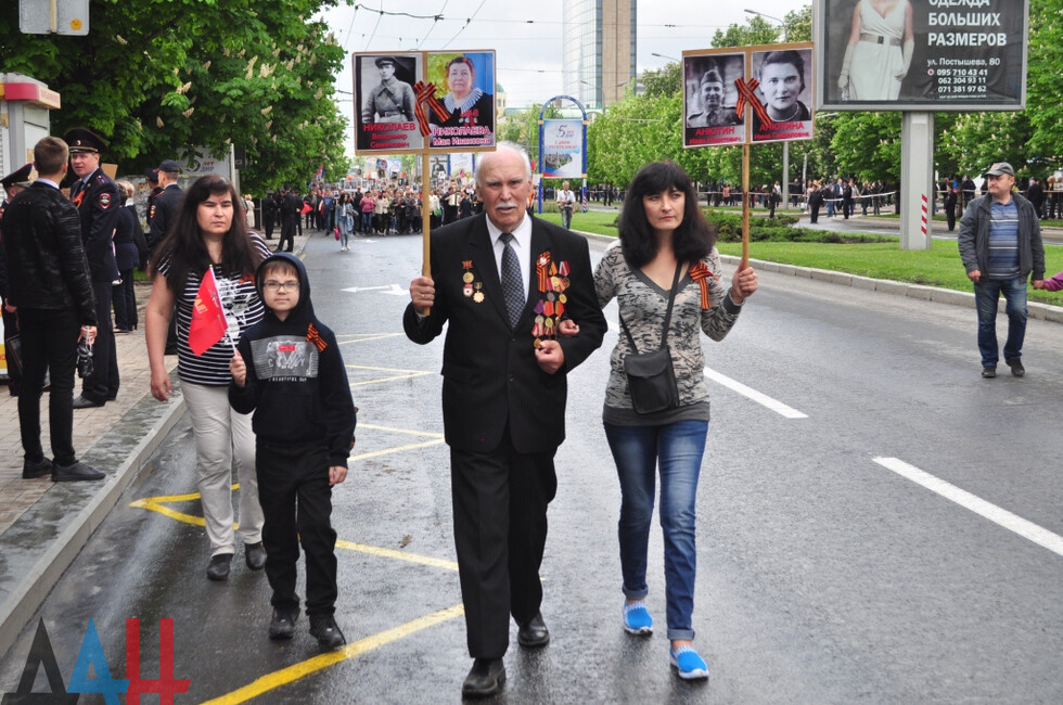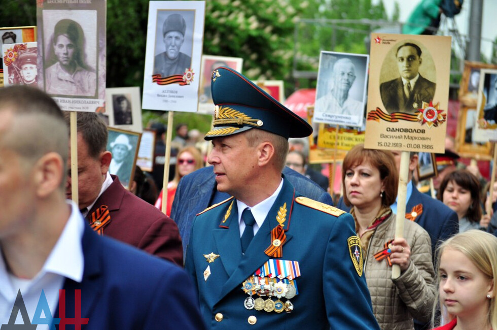 “The Immortal Regiment brings together thousands of people; they are legendary worriors who must be always remembered. Their victorious cause will last forever. Here, we honour the feat of the Soviet people and are now paying tribute to the Donetsk people,” Leningrad Blockade run participant Gusman Safin told the Donetsk News Agency.