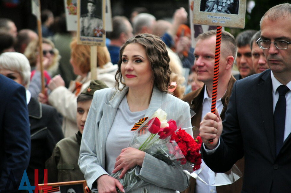 “I have spent May 9 in Syria for the past three years. But this year I said that would stay in Donetsk,” Russian actress Viktoria Tarasova said adding that it was the first time she was joining the Immortal Regiment action.