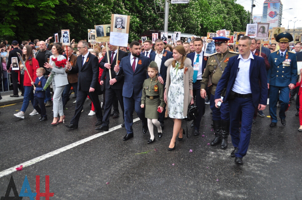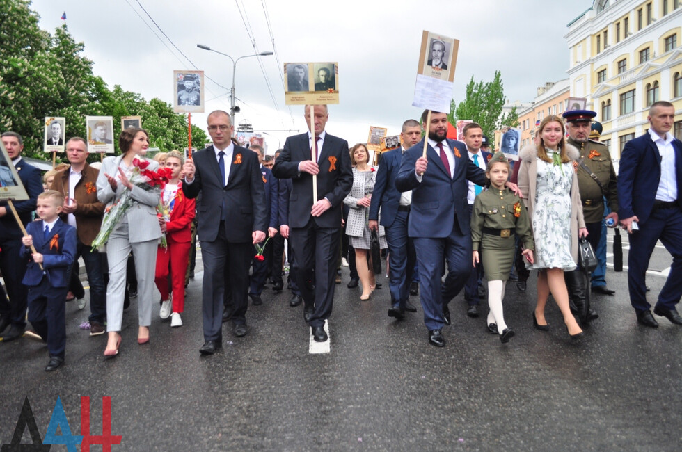 The Immortal Regiment march in Donetsk lasted about an hour as the column walked from Lenin Square towards the Lenin Komsomol Park where a Victory Day rally was held. DPR Head Denis Pushilin took part in V Day events.*jk