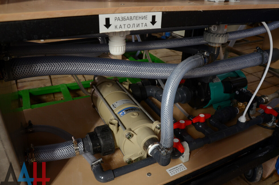 Russian engineers helped install and adjust the equipment. One of them told DAN that water was decontaminated with chlorine dioxide. It fully neutralises harmful substances, precipitates them into indissoluble residue and filters them off.