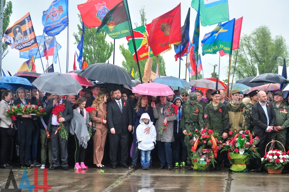 Shakhtersk, May 8 – DAN. Around 15 thousand people joined the celebration of the 72nd anniversary of the Victory Day at a legendary Saur-Mogila tumulus in DPR Shakhterskiy district, including the DPR Head Alexander Zakharchenko and DPR envoy to Minsk negotiations Denis Pushilin, WWII veterans.