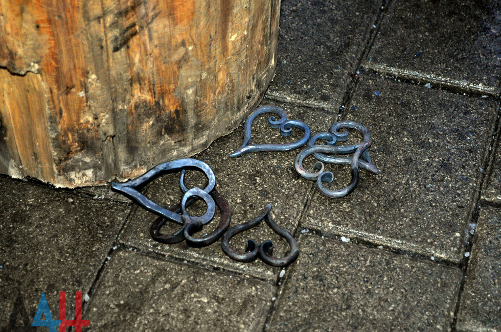 “Today, lovers the world over give each other Valentine’s Day cards expressing their affection. Donbass blacksmiths have again presented the hearts they forged with loving care to the romantics who came here at such an early hour,” Donbass Blacksmiths Guild chairman Viktor Burduk told Donetsk News Agency.