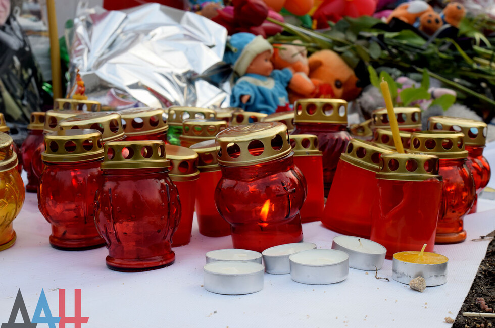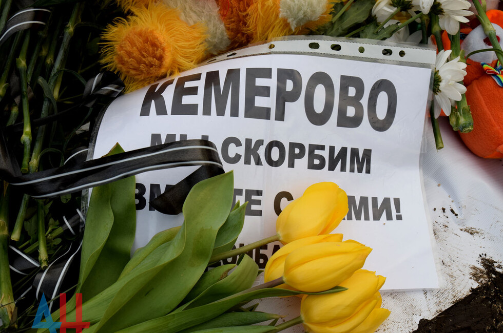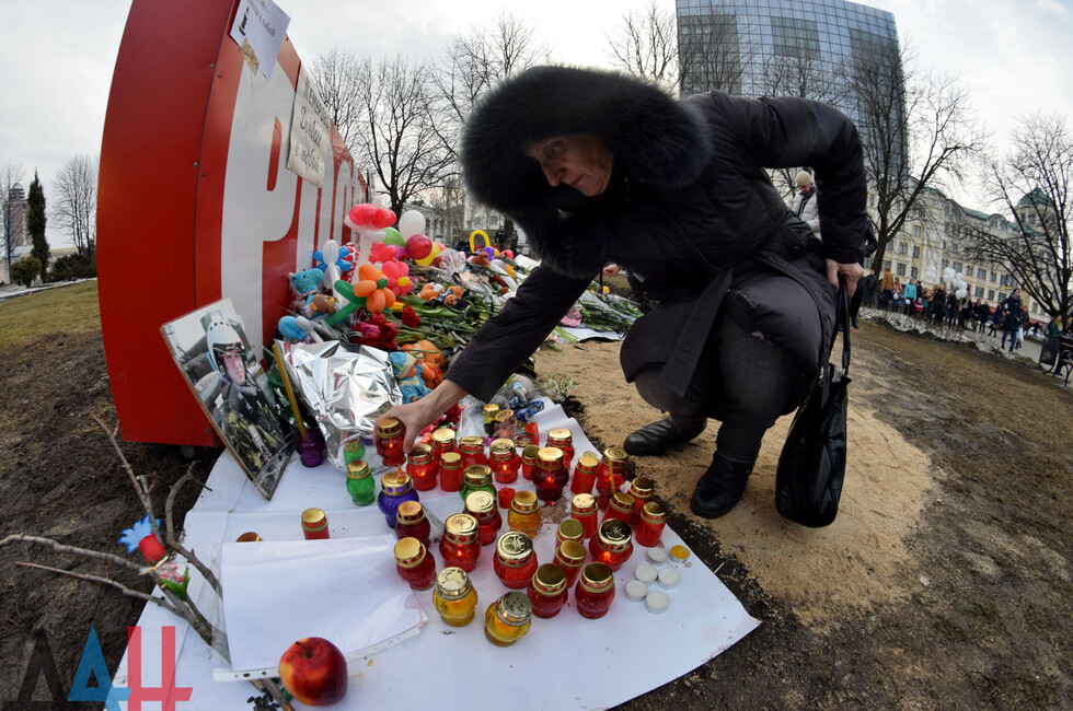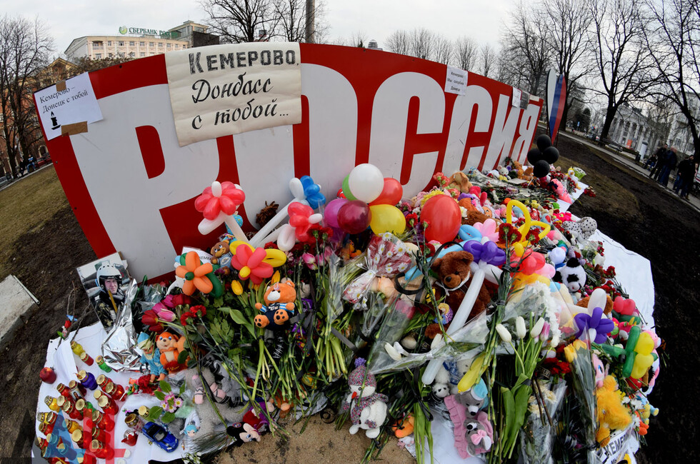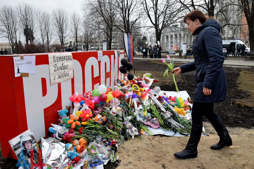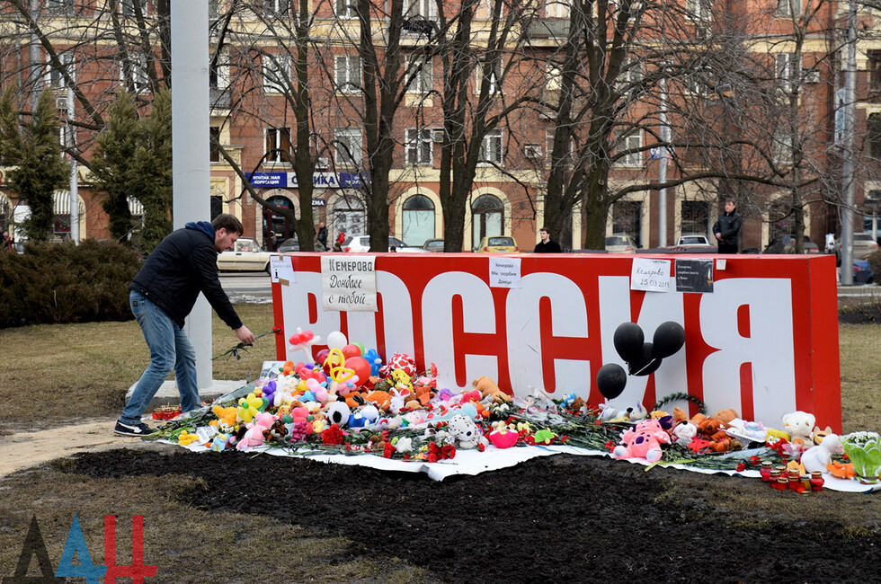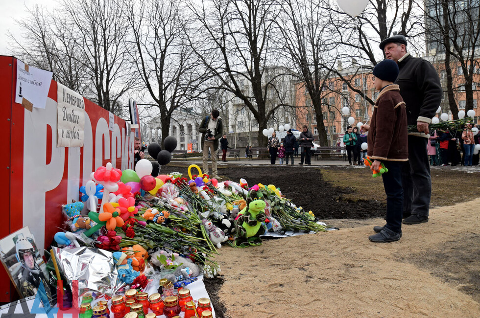 Donetsk residents release white balloons to the air to commemorate Kemerovo fire victims