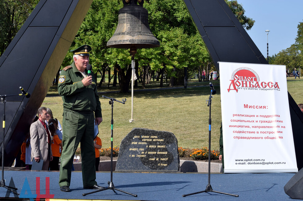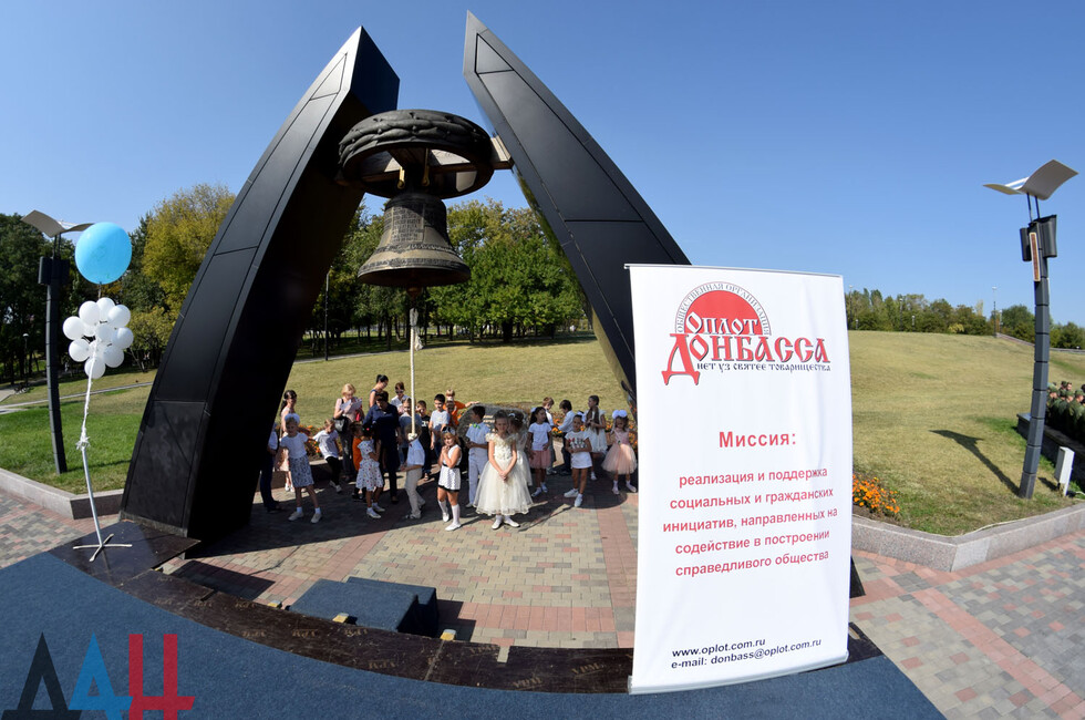 Almost 300 people - MPs, students, representatives of social organizations and Donetsk authorities - gathered by the monument to Donbass Liberators in the Leninskiy Komsomol park to participate in memorial rally ‘Bell of Peace’.