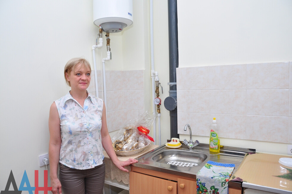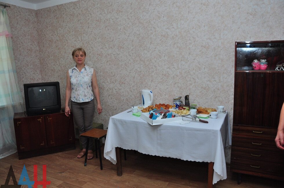 The apartment has been redone, and vinyl windows have been installed. The kitchens and bathrooms come well-equipped with appliances and furniture. Dmitry will have a room of his own. Town administration officials and Donetsk Republic public movement activists helped furnish the apartment.