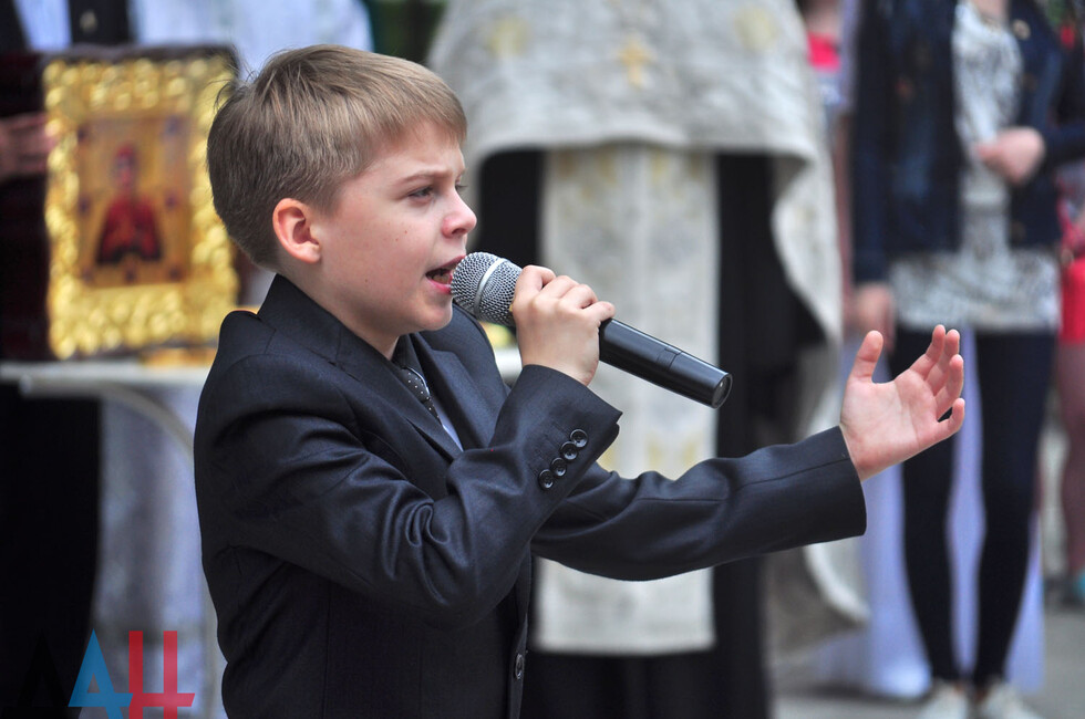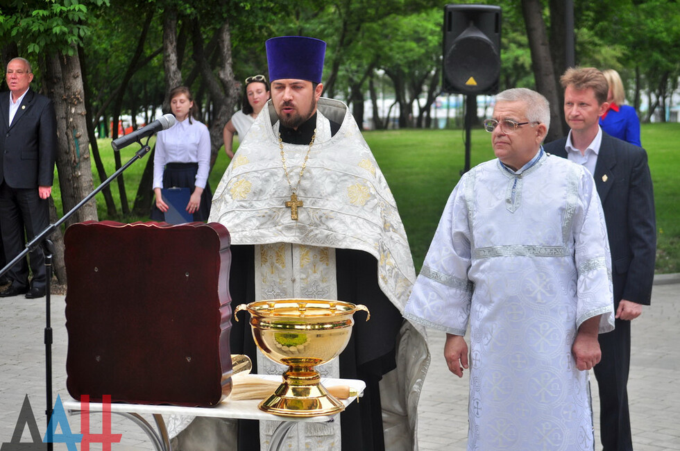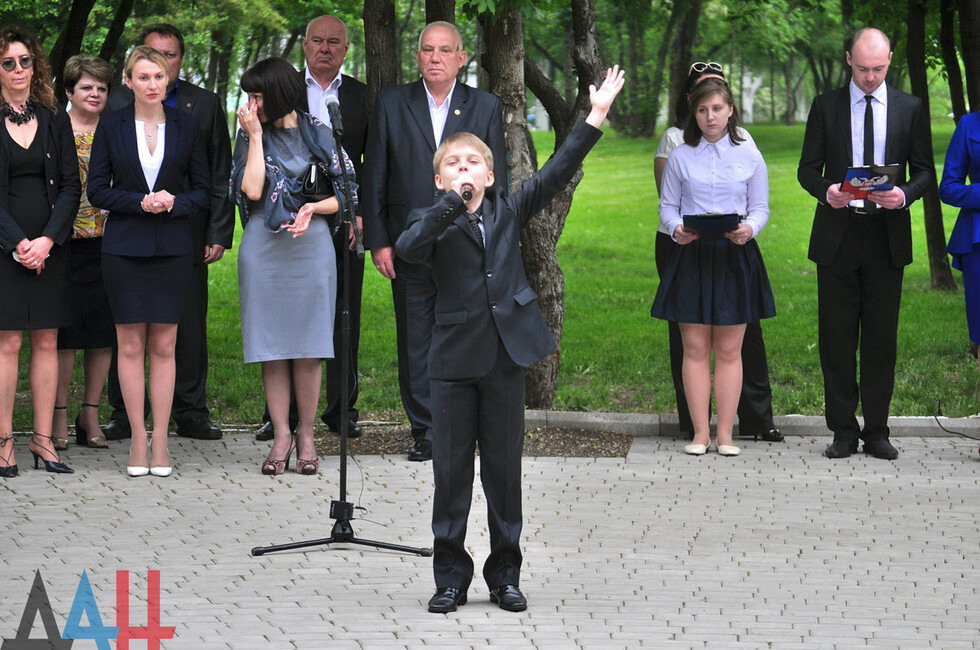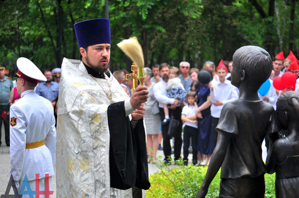 Archpriest Svyatoslav led a prayer by the monument and consecrated it. Next, young DPR vocalists sang songs about peace and childhood.