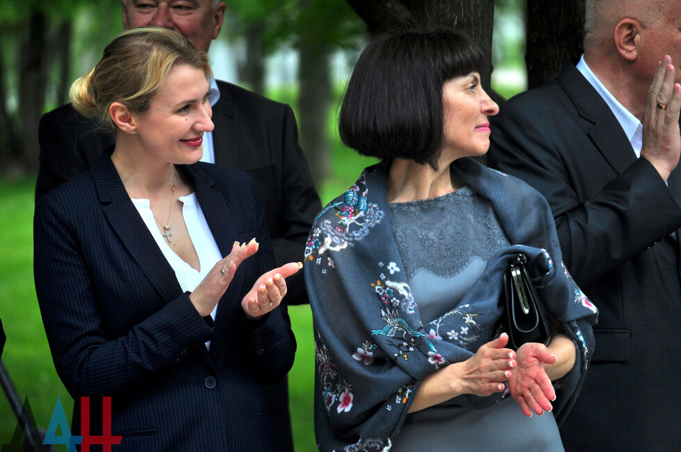 Morozova and Mondaini then unveiled the sculpture which had been covered with DPR and Russian Federation flags.