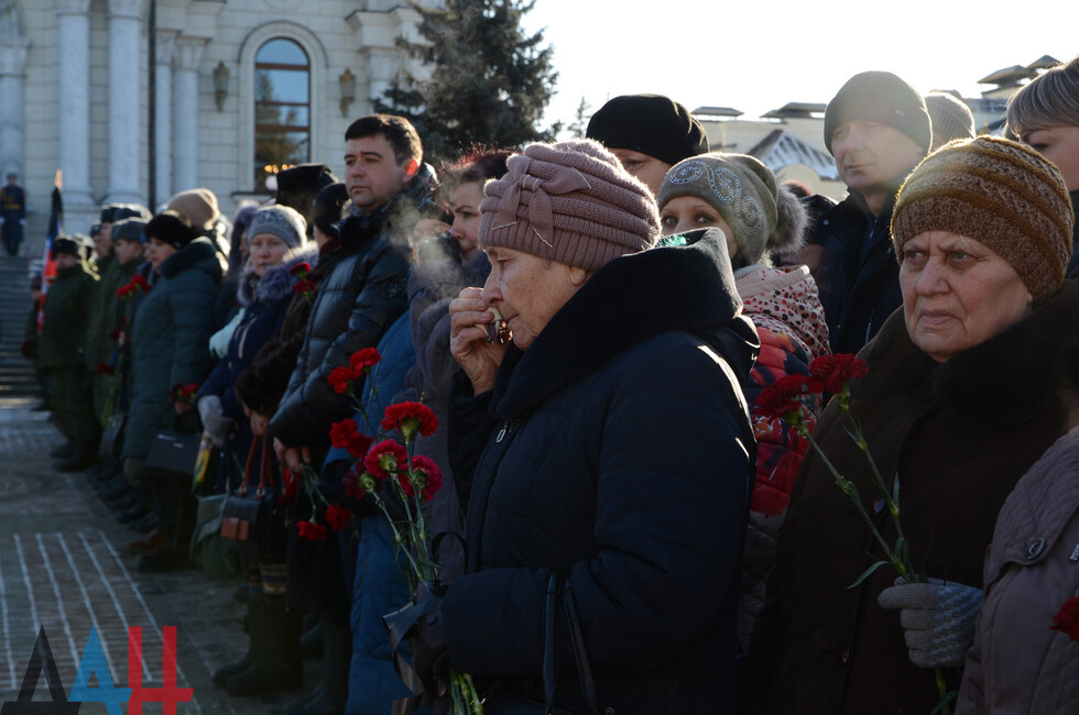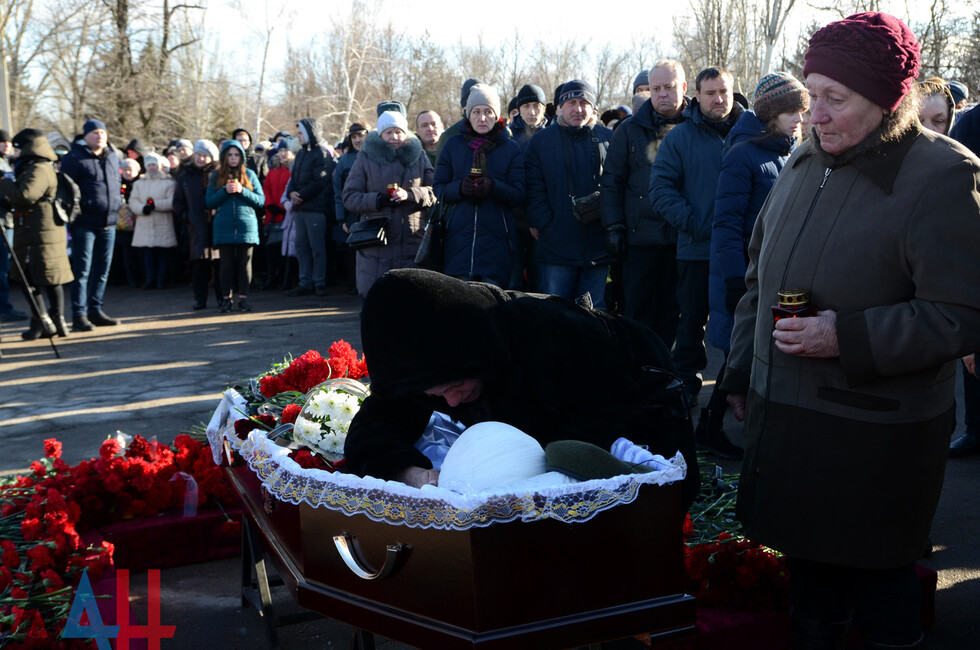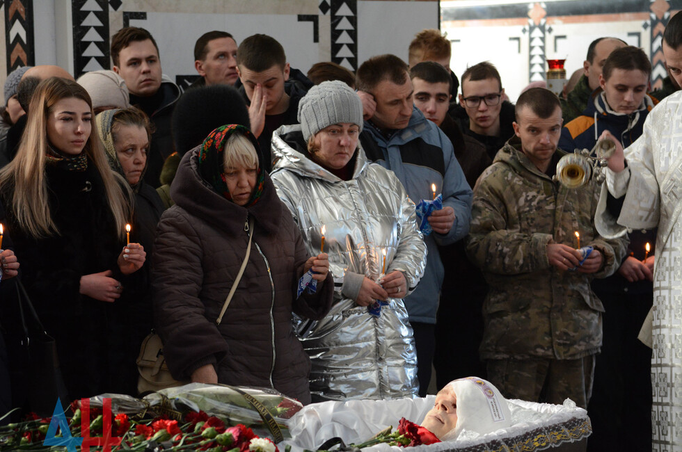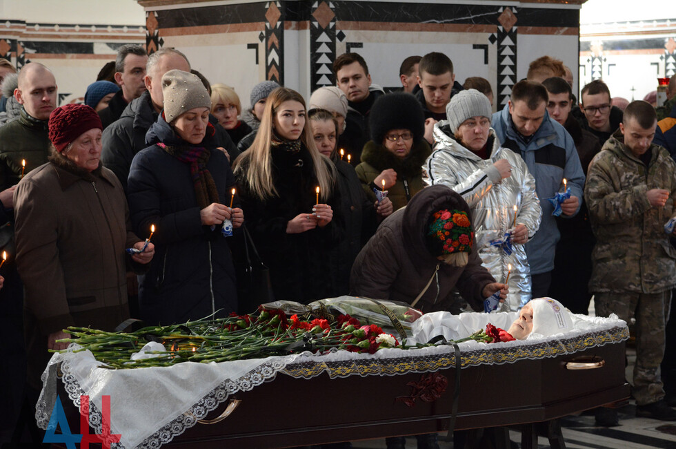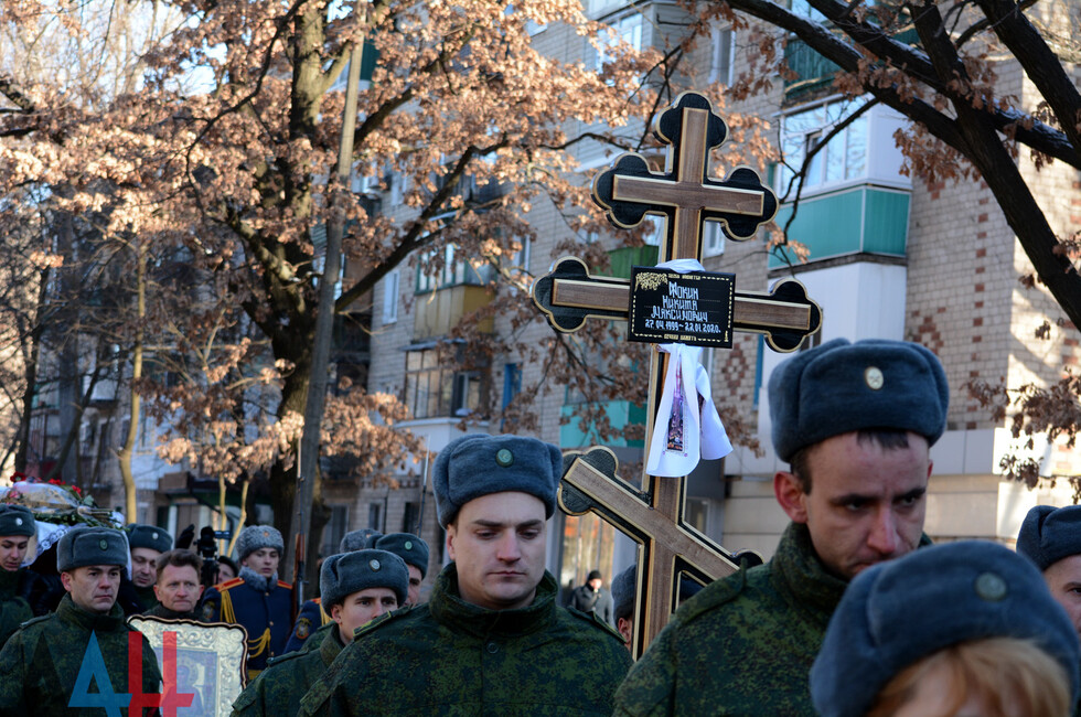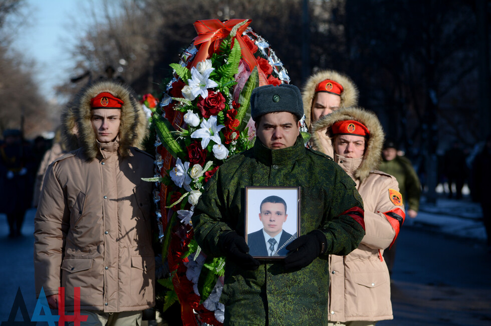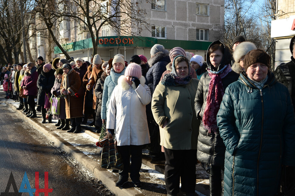 Gorlovka, Jan 24 – DAN. Thousands DPR residents pay their last respects to DPR People's Militia Corporal Nikita Fokin, killed by a Ukrainian sniper. The memorial service took place in Gorlovka.