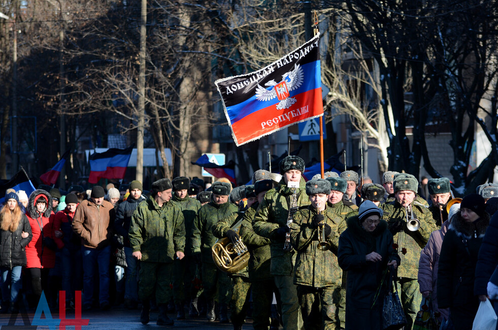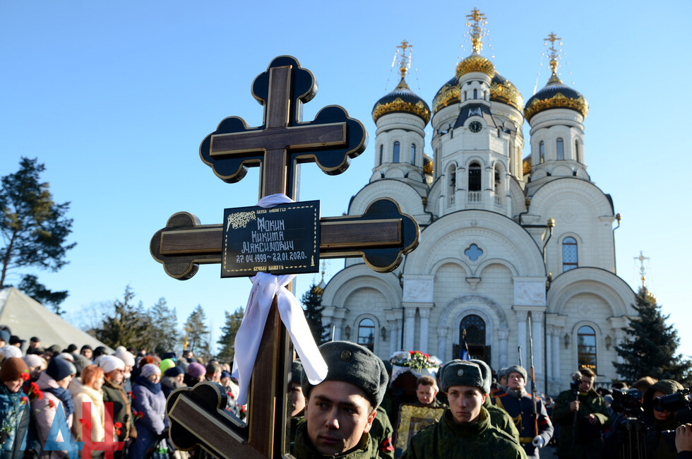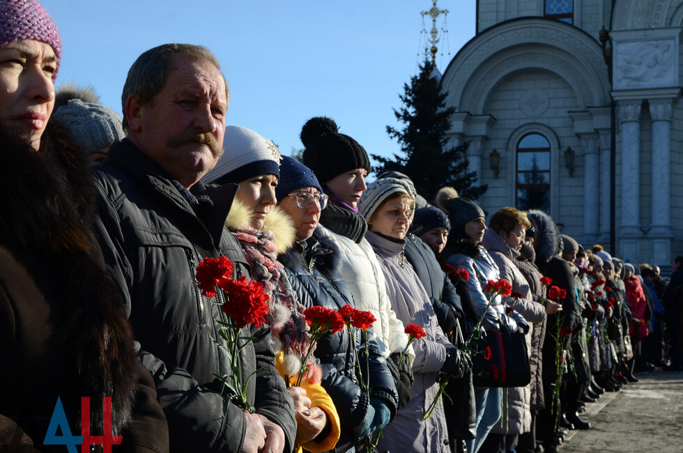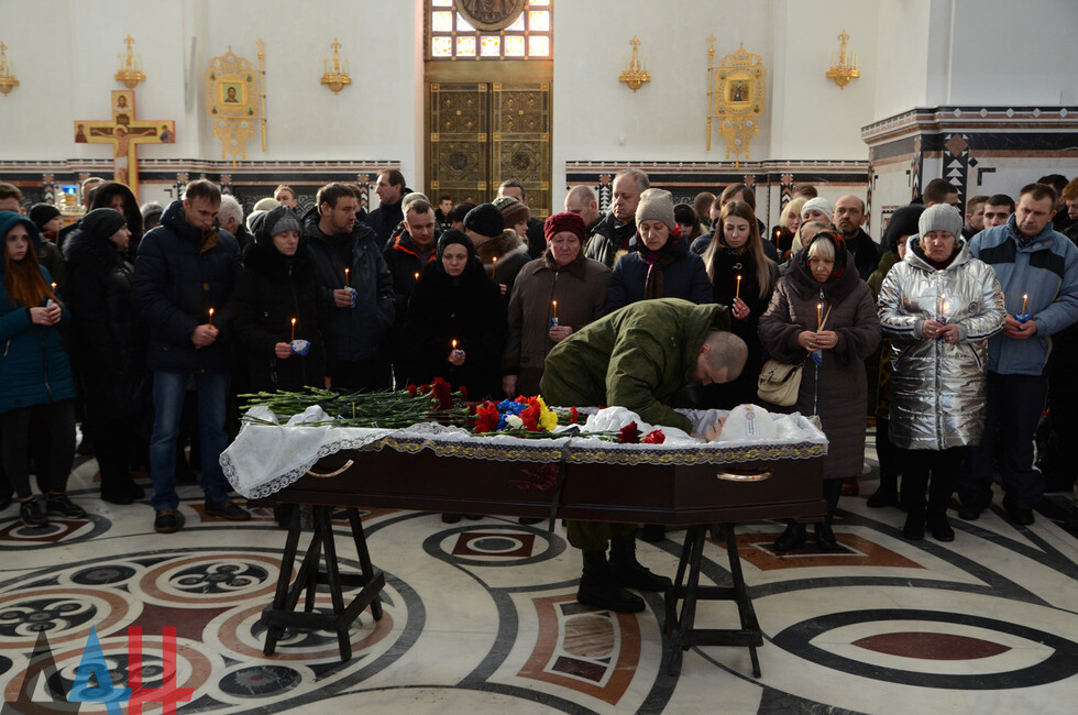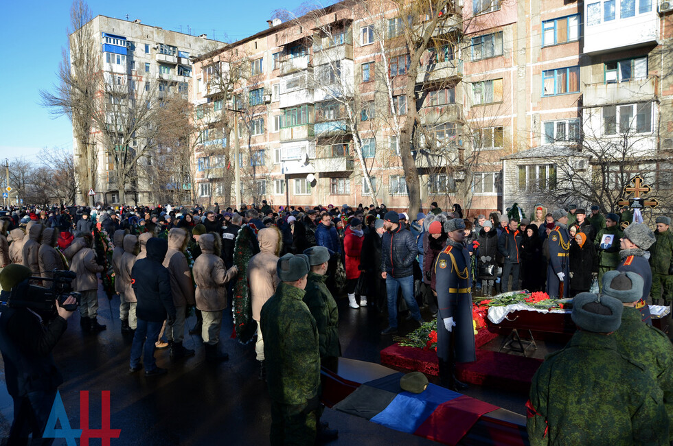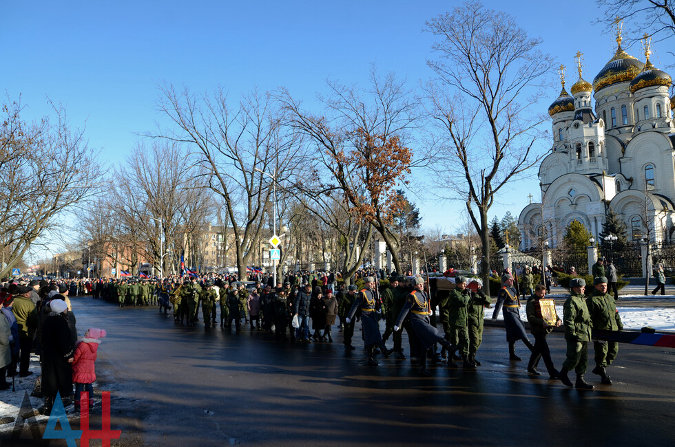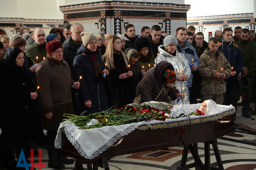 Gorlovka, Jan 24 – DAN. Thousands DPR residents pay their last respects to DPR People's Militia Corporal Nikita Fokin, killed by a Ukrainian sniper. The memorial service took place in Gorlovka.