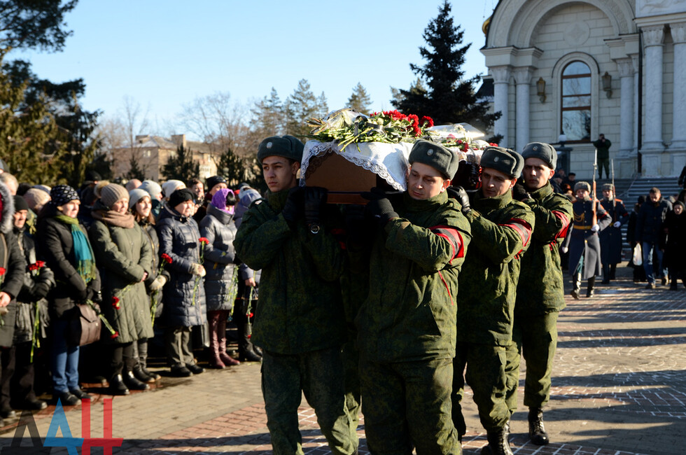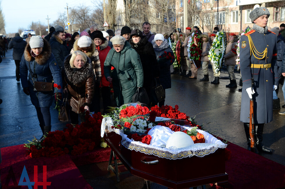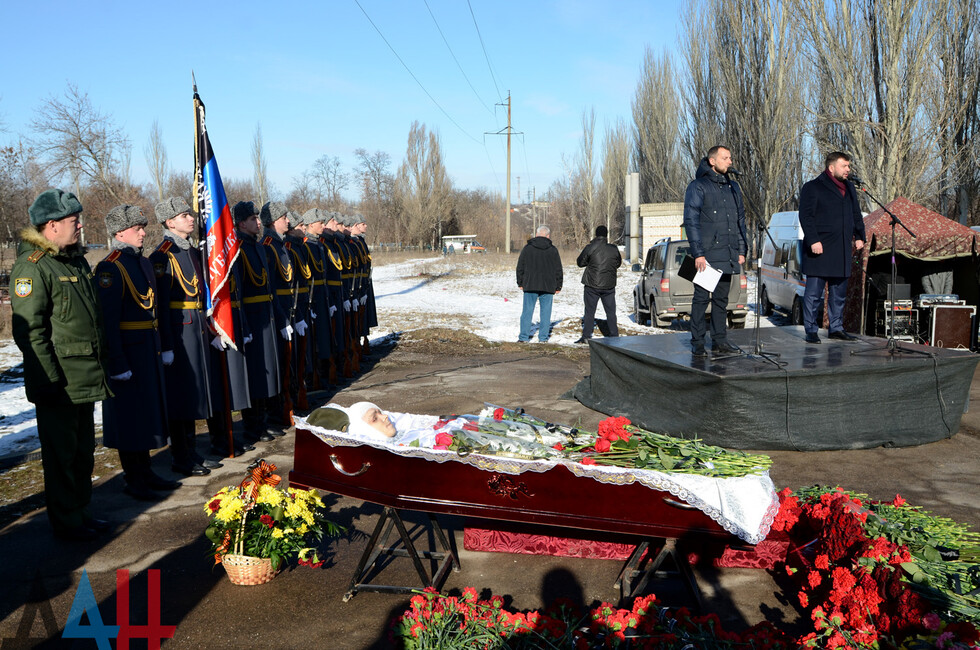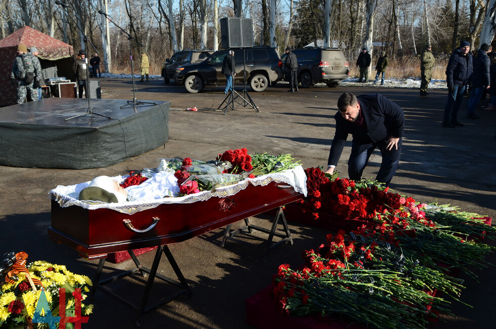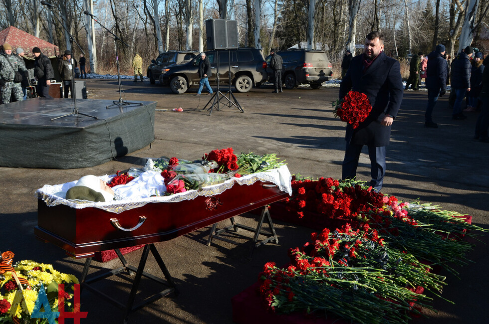 The DPR Head Denis Pushilin and DPR People's Militia deputy chief-of-staff Eduard Basurin have also been present to pay the tribute to the fallen soldier and extend their condolences to the family.