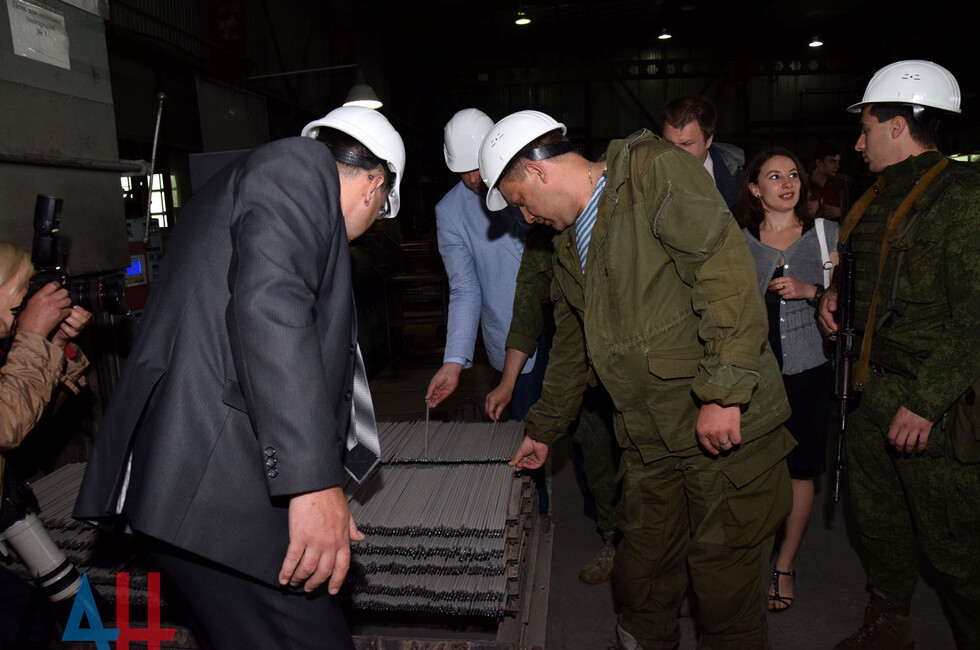 Arcsel administration arranged a tour of the company for the DPR head and journalists. The enterprise now has functioning wire and electrical wire shops. Monthly output is expected to reach up to 40 tons. Arcsel has already signed contracts with the Donetsk, Yuzovskiy and Enakievo metallurgical companies.