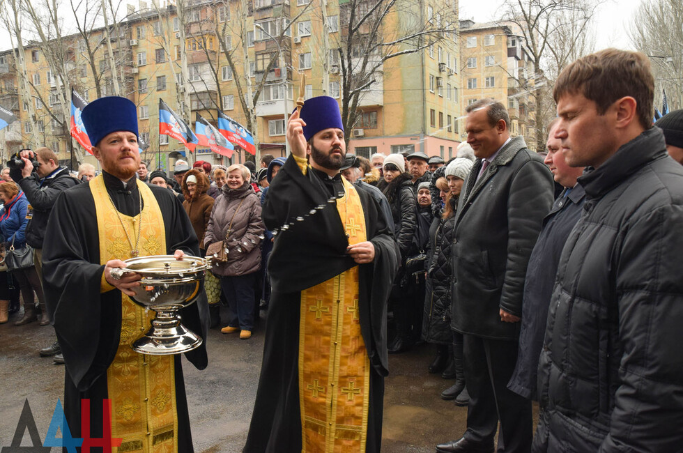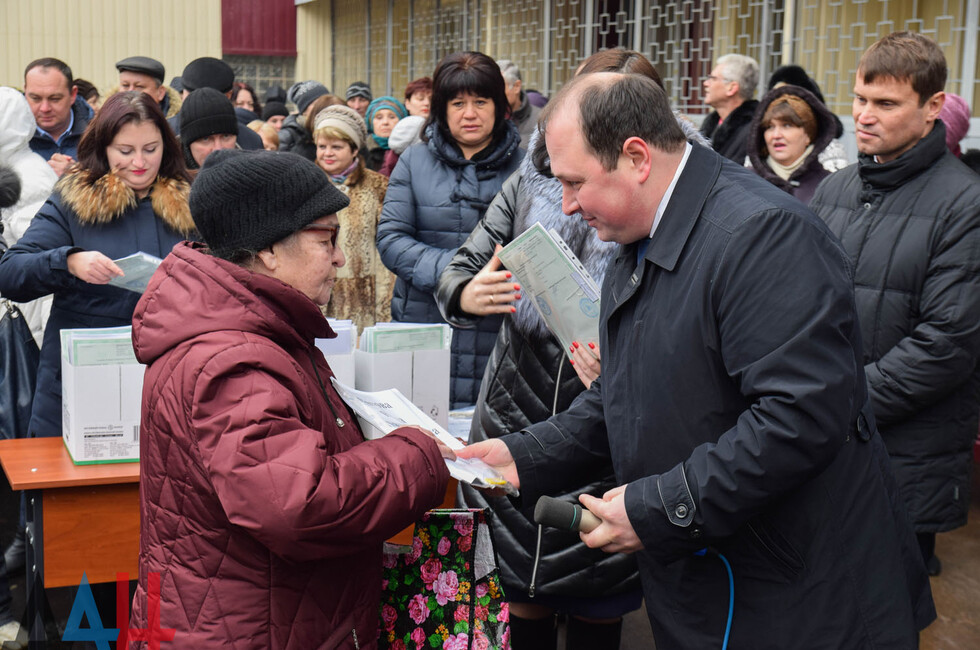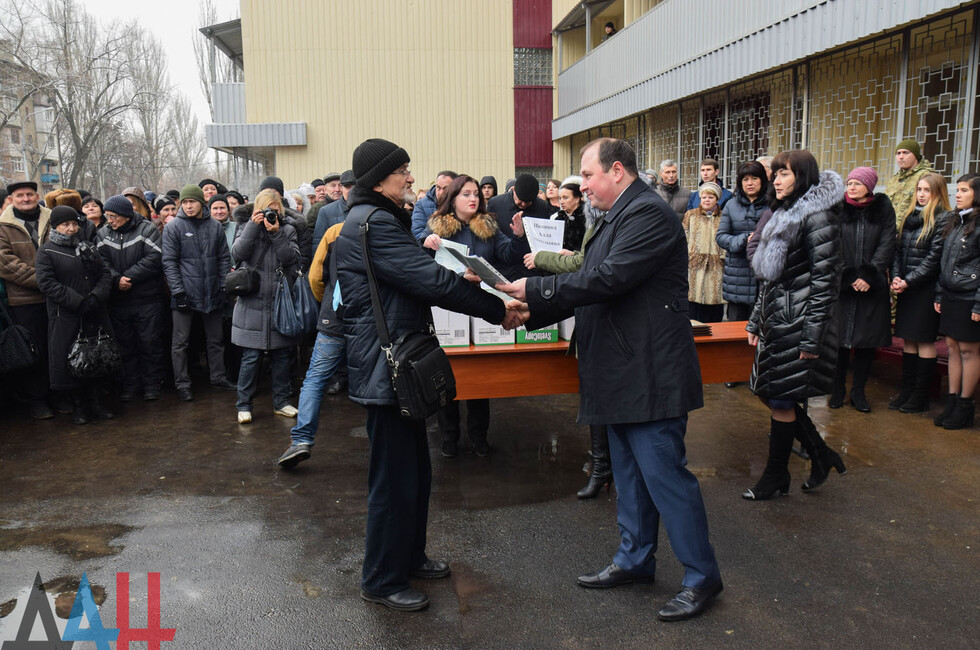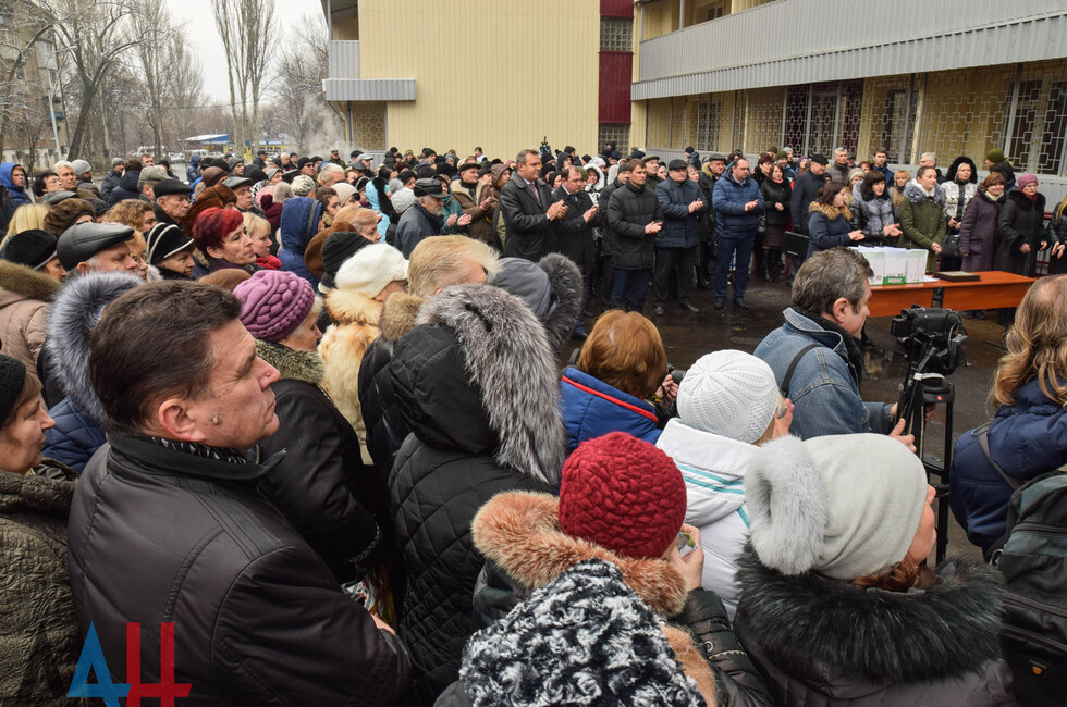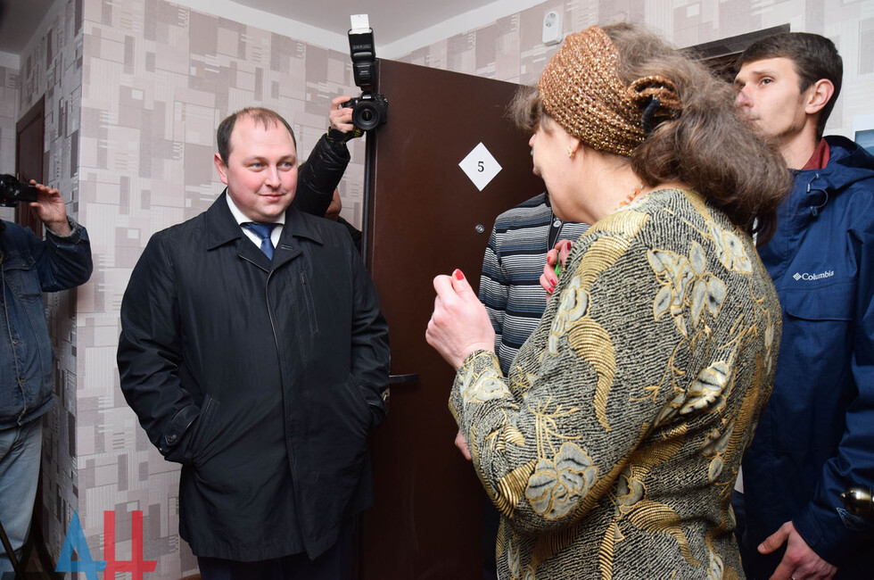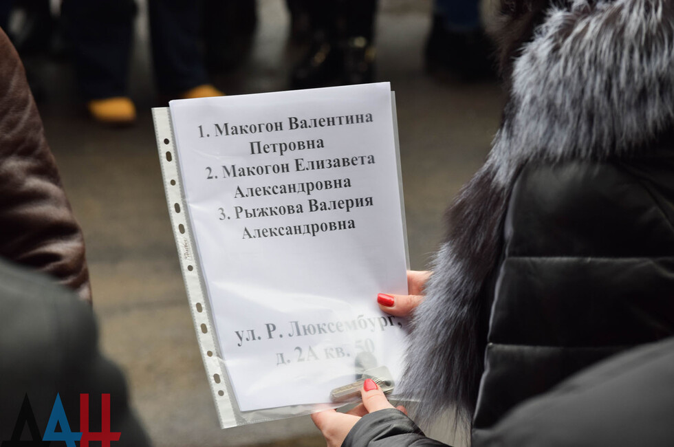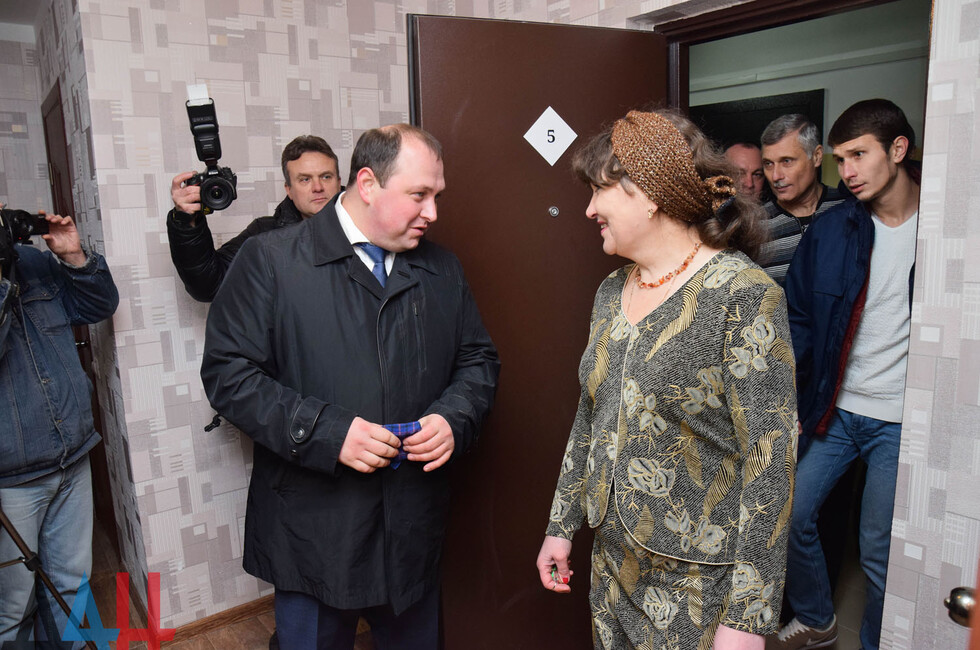 The DPR head Alexander Zakharchenko handed the keys over to the first eight families moving in. *ot