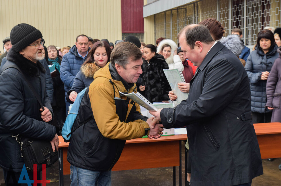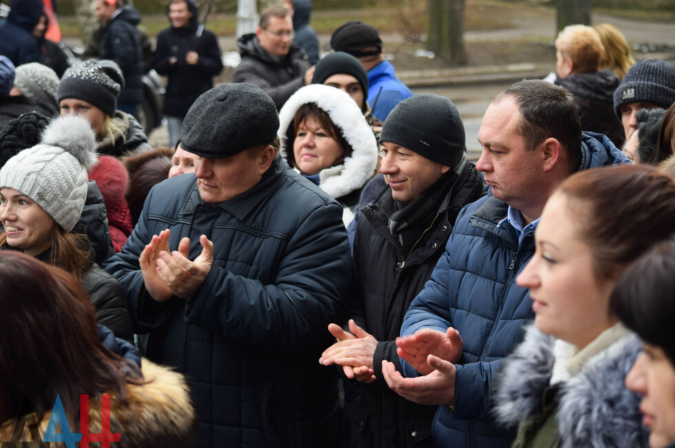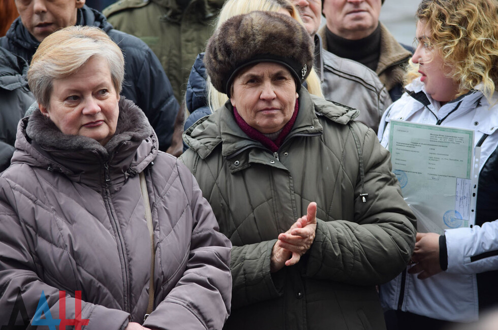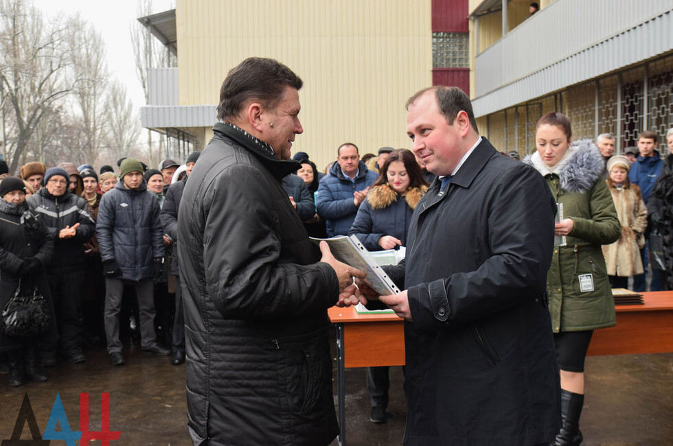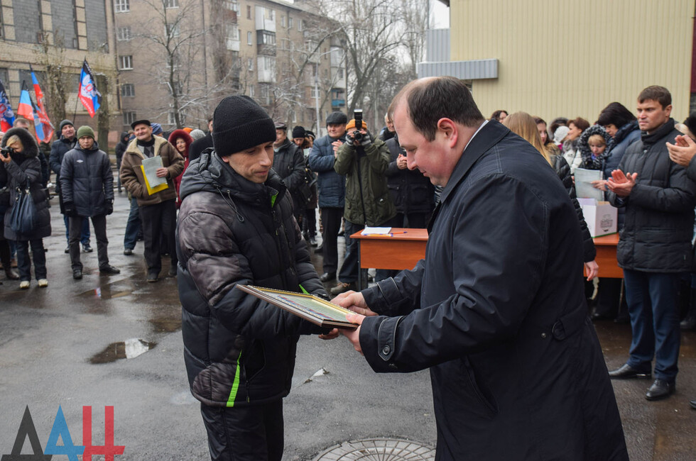 Deputy Chairman of the DPR Council of Ministers Dmitry Trapeznikov, the minister of construction and utility services Sergey Naumets, acting Donetsk mayor Alexey Kulemzin took part in the ceremony of handing over the first keys to the residents of the newly repaired houses.